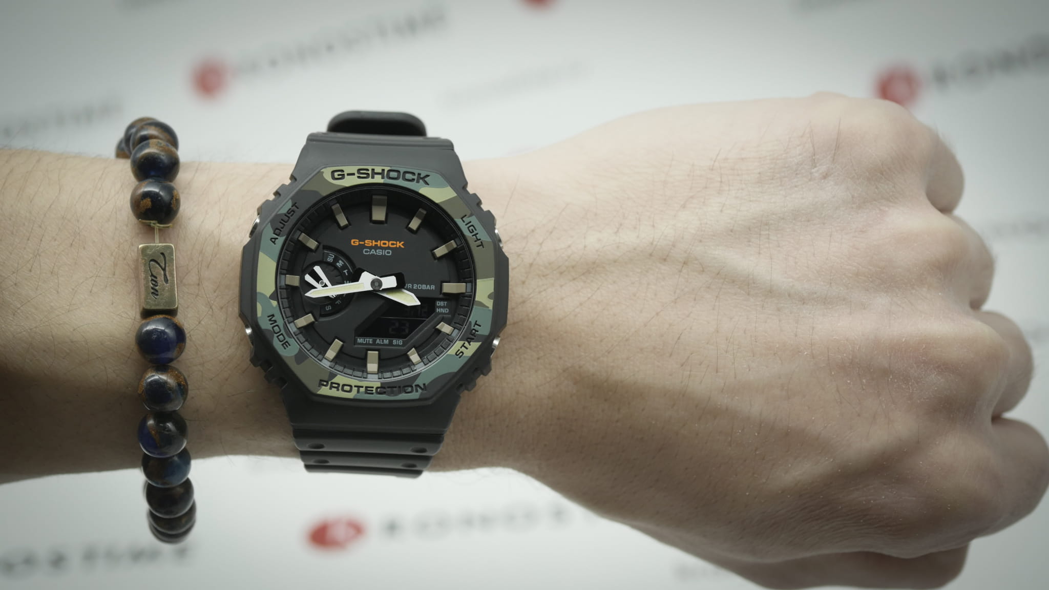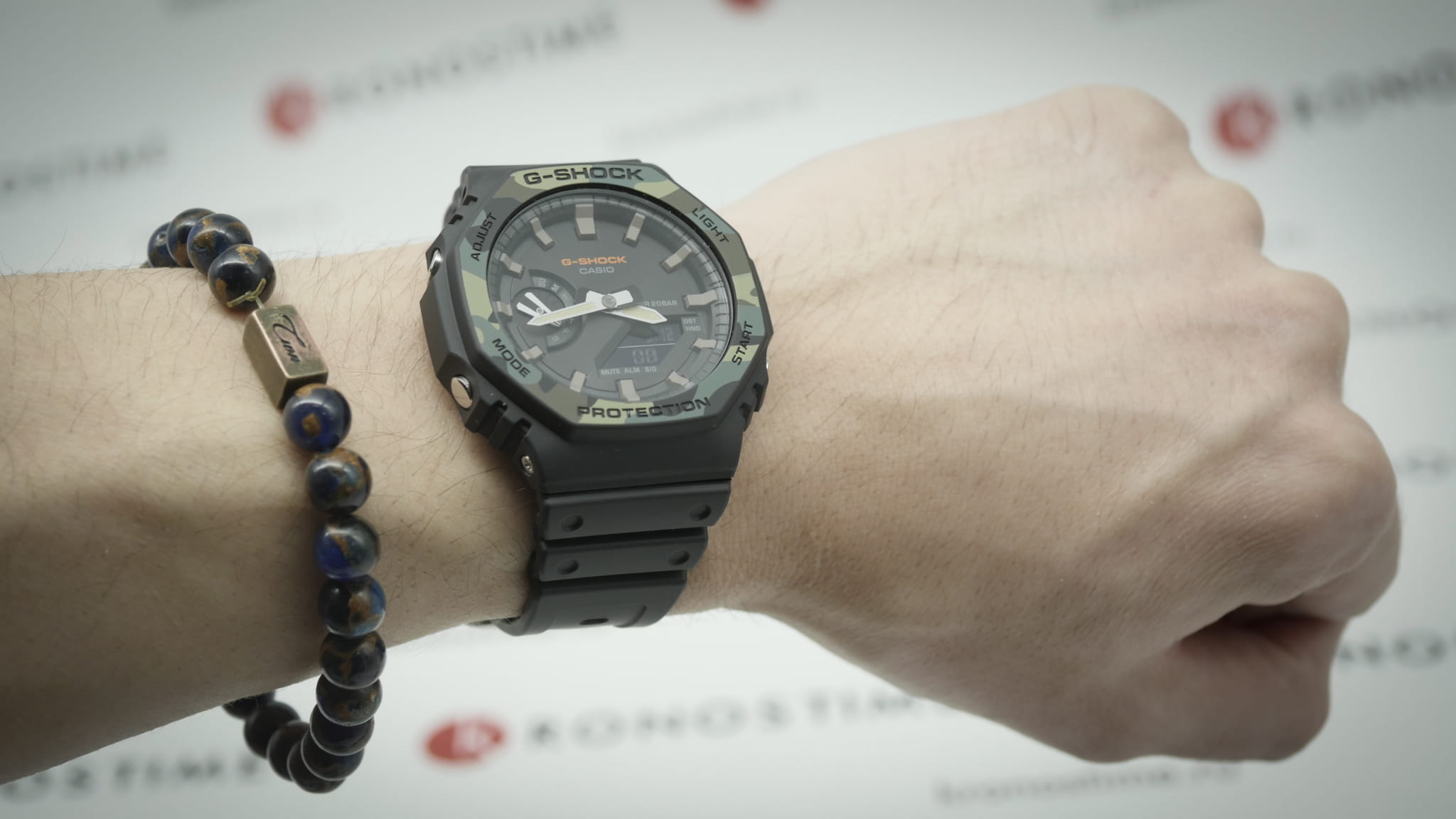 Интересный дизайн под милитари-хаки за счёт красивого камуфляжного безеля.