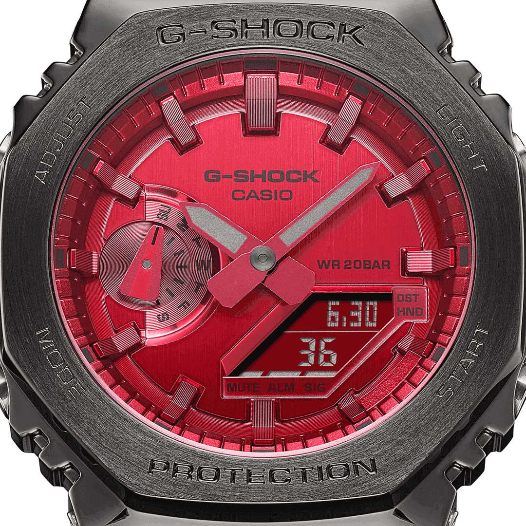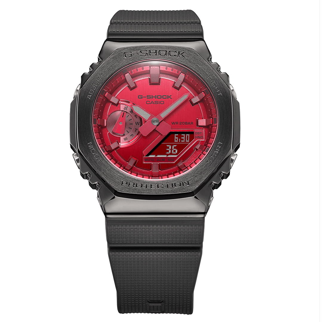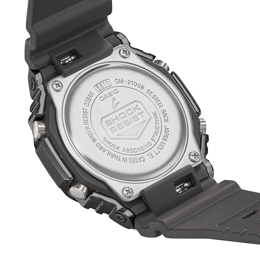 Японские мужские часы-хронографХронографФункция позволяет измерять отрезки времени с особой точностью: часы, минуты, секунды. Верным признаком хронографа является наличие на циферблате 3 дополнительных окошек-счётчиков. Casio G-Shock GM-2100B-4A из коллекции G-Shock. Минеральное стеклоМинеральное стеклоМинеральное стекло представляет собой искусственно выращенный минерал кварца. Такое стекло отличается особой устойчивостью к повреждениям и царапинам. Уступает по некоторым качествам сапфировому стеклу. устойчивое к появлению царапин, обладающее высокой прозрачностью. Ударопрочный корпусУдаропрочный корпусМеханизм заключён в корпус, выполненный из современных материалов, устойчивых к ударам, механическим повреждениям и падению с высоты: инновационный пластик, карбон, нержавеющая сталь, титан. из стали с IP-покрытиемIP-покрытиеМетод ионного напыления. Демонстрирует повышенную устойчивость к истиранию, окислению и химическим веществам. Под воздействием высокого давления и температуры около 1500°C молекулы металла надёжно соединяются с частицами корпуса часов. защищает механизм от ударов и вибрации. Светодиодная подсветкаСветодиодная подсветкаСветодиодная или LED-подсветка обеспечивает появление яркого холодного свечения за счёт LED-элементов - маленьких лампочек. Они потребляют минимальное количество энергии, чаще всего можно встретить 1 светодиод, в нижней части циферблата. освещает весь циферблат. Мировое времяМировое время Полезное часовое усложнение, отображающее время в основных городах и известных областях по всему миру, оно связано с часовыми поясами, удобно для путешественников и бизнесменов. – 48 городов (29 часовых поясов). СекундомерСекундомерСекундоме́р — прибор, способный измерять интервалы времени с точностью до долей секунды. с точностью измерения 1/100 секунды и измерением до 23 часов 59 минут 59,99 cек. ТаймерТаймерОтсчитывает секунды в обратном направлении в заданном интервале времени. обратного отсчета (диапазон времени 24 часа), автоматический календарь, 12/24 отображение времени. 5 будильниковБудильникБуди́льник — часы, в заданный момент времени подающие звуковой, световой и/или в редких случаях другой сигнал., один с функцией Snooze, ежечасный сигнал. Класс водозащиты: 200 метров, позволит плавать, нырять и заниматься другими водными видами спорта. Ремешок из полимерного материала на стандартной застежке.
