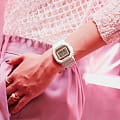 Японские часы с таймеромТаймерОтсчитывает секунды в обратном направлении в заданном интервале времени. Casio G-Shock GMD-S5600-8, кварцевый механизм с высокой точностью. Класс водозащиты: 200 метров, позволит плавать, нырять и заниматься другими водными видами спорта. Корпус и браслет часов изготовлен из пластика. Пластиковый ремешок на стандартной застёжке. Модель имеет пять независимых будильниковБудильникБуди́льник — часы, в заданный момент времени подающие звуковой, световой и/или в редких случаях другой сигнал. для оповещения. Минеральное стеклоМинеральное стеклоМинеральное стекло представляет собой искусственно выращенный минерал кварца. Такое стекло отличается особой устойчивостью к повреждениям и царапинам. Уступает по некоторым качествам сапфировому стеклу. устойчивое к мелким механическим повреждениям. Светодиодная подсветкаСветодиодная подсветкаСветодиодная или LED-подсветка обеспечивает появление яркого холодного свечения за счёт LED-элементов - маленьких лампочек. Они потребляют минимальное количество энергии, чаще всего можно встретить 1 светодиод, в нижней части циферблата. освещает весь циферблат. После первичной настройки автоматический вечный календарьВечный календарьКлассическое часовое усложнение, представляющее собой календарь, рассчитанный на несколько лет вперёд (стандартно – до 2099 года). Определяет текущую дату, день недели, месяц. всегда отображает точную дату. СекундомерСекундомерСекундоме́р — прибор, способный измерять интервалы времени с точностью до долей секунды. измеряется прошедшее время с точностью в 1/100 секунды, пределы измерения достигают 24 часов.