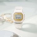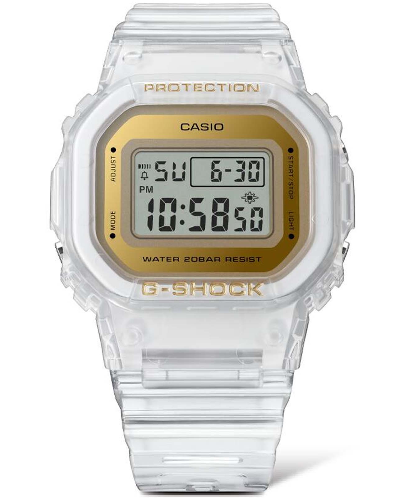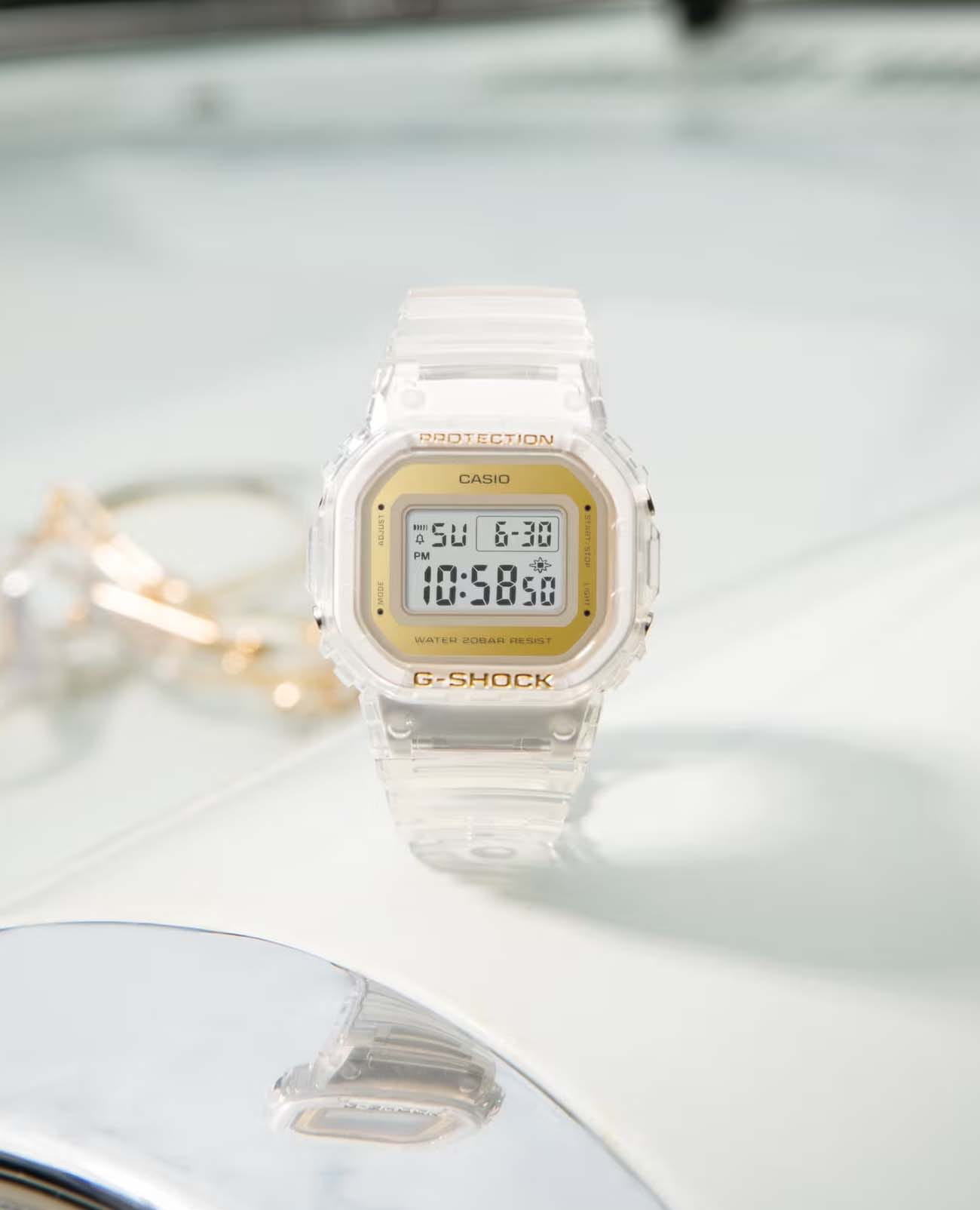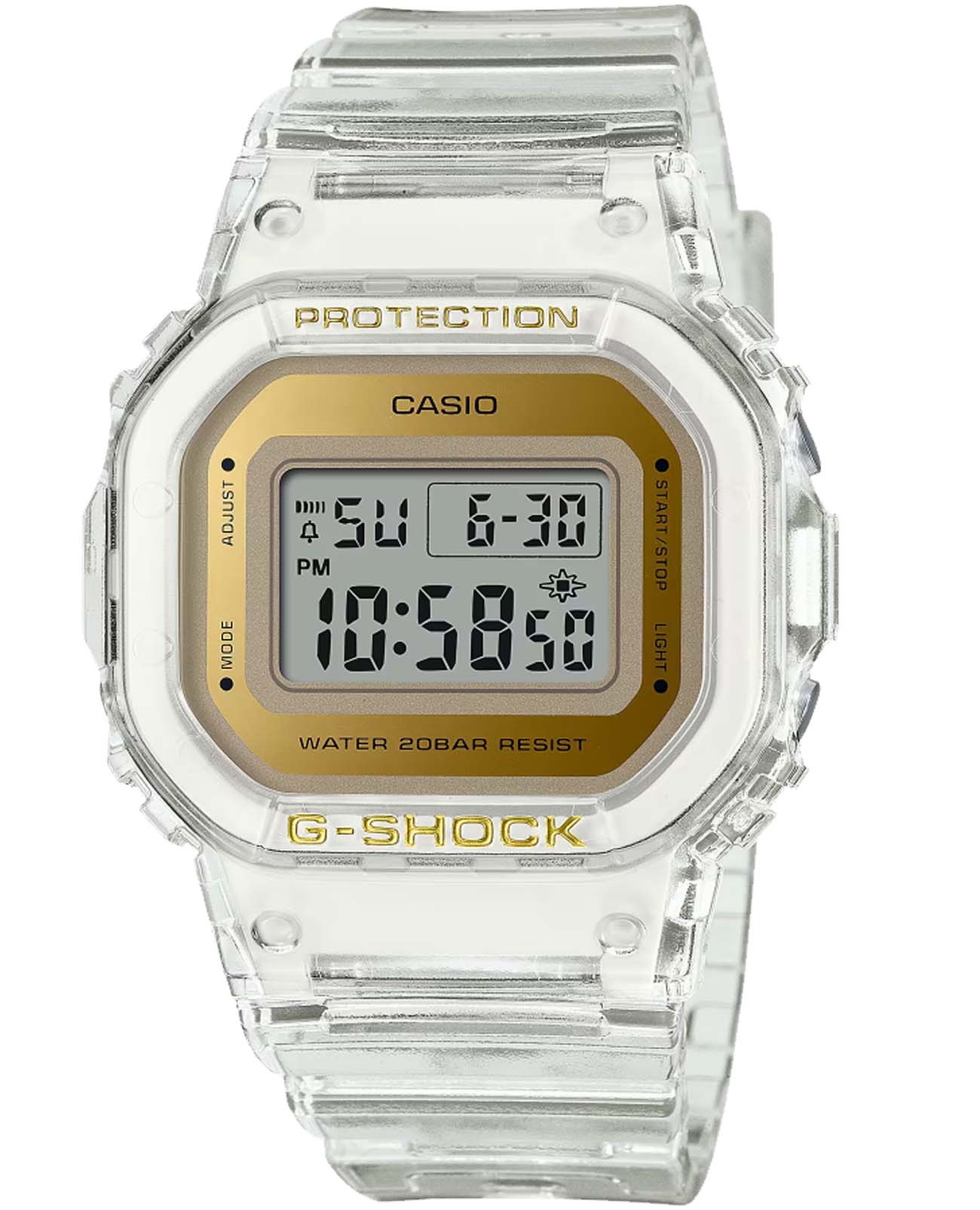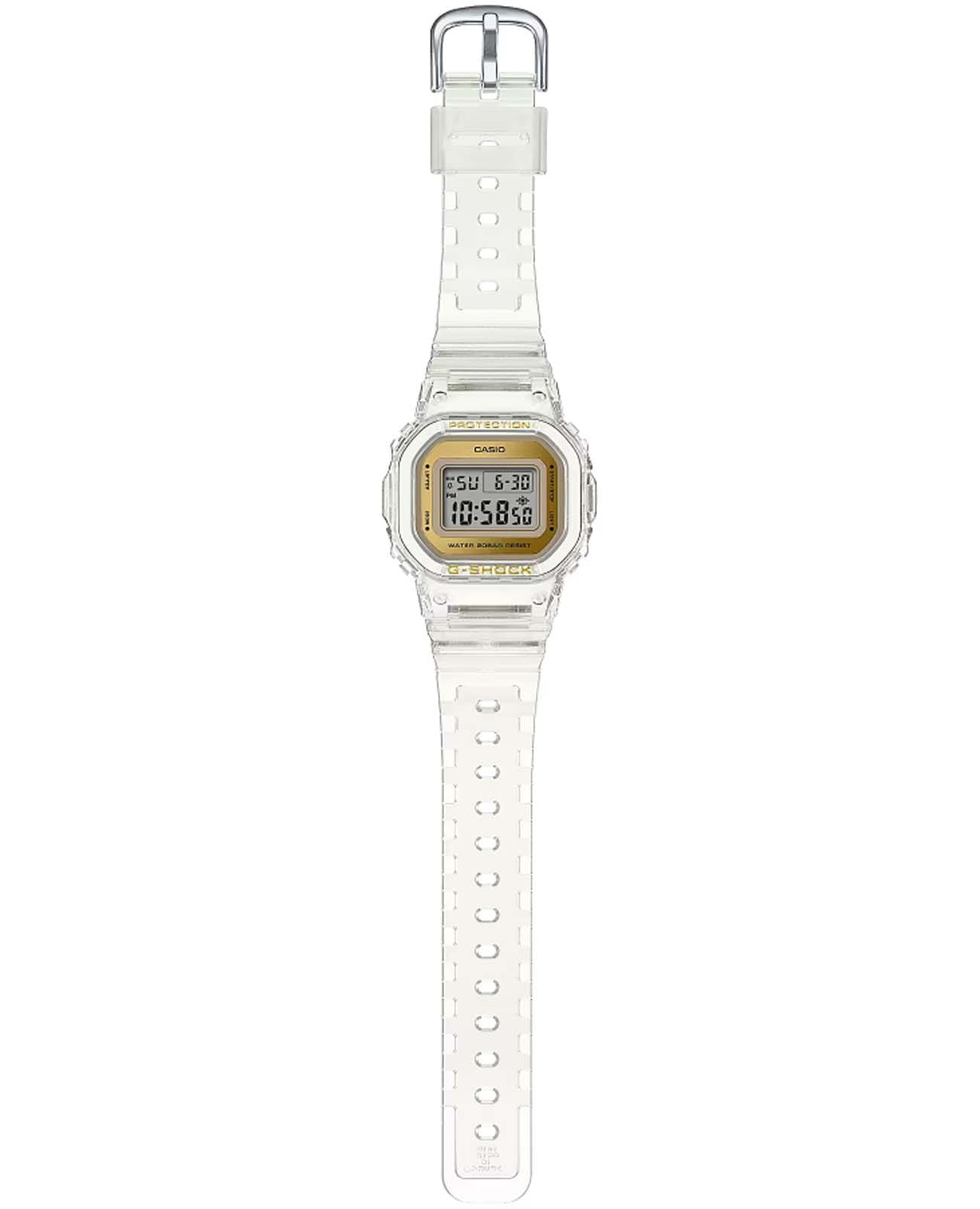 Японские часы с таймеромТаймерОтсчитывает секунды в обратном направлении в заданном интервале времени. Casio G-Shock GMD-S5600SG-7DR, кварцевый механизм с высокой точностью. Класс водозащиты: 200 метров, позволит плавать, нырять и заниматься другими водными видами спорта. Корпус и браслет часов изготовлен из пластика. Пластиковый ремешок на стандартной застёжке. Модель имеет пять независимых будильниковБудильникБуди́льник — часы, в заданный момент времени подающие звуковой, световой и/или в редких случаях другой сигнал. для оповещения. Минеральное стеклоМинеральное стеклоМинеральное стекло представляет собой искусственно выращенный минерал кварца. Такое стекло отличается особой устойчивостью к повреждениям и царапинам. Уступает по некоторым качествам сапфировому стеклу. устойчивое к мелким механическим повреждениям. Светодиодная подсветкаСветодиодная подсветкаСветодиодная или LED-подсветка обеспечивает появление яркого холодного свечения за счёт LED-элементов - маленьких лампочек. Они потребляют минимальное количество энергии, чаще всего можно встретить 1 светодиод, в нижней части циферблата. освещает весь циферблат. После первичной настройки автоматический вечный календарьВечный календарьКлассическое часовое усложнение, представляющее собой календарь, рассчитанный на несколько лет вперёд (стандартно – до 2099 года). Определяет текущую дату, день недели, месяц. всегда отображает точную дату. СекундомерСекундомерСекундоме́р — прибор, способный измерять интервалы времени с точностью до долей секунды. измеряется прошедшее время с точностью в 1/100 секунды, пределы измерения достигают 24 часов.