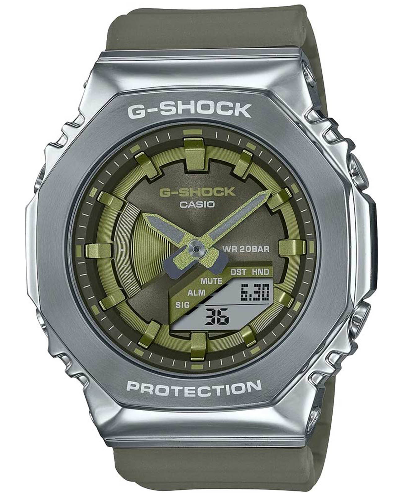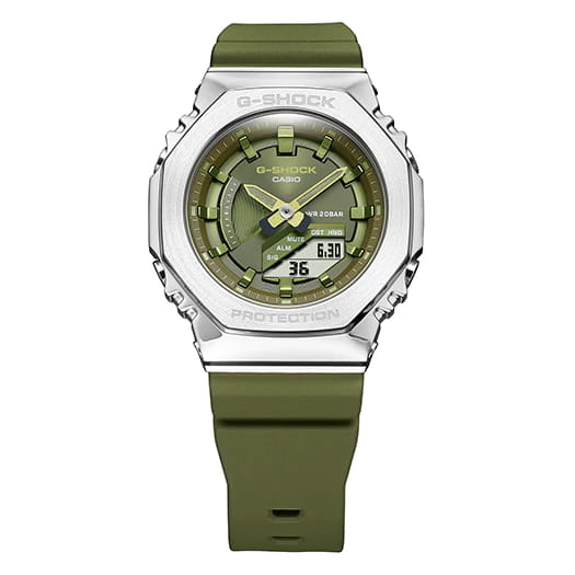 Спортивные японские женские наручные часы Casio G-Shock GM-S2100-3AER, кварцевый механизм с высокой точностью. Класс водозащиты: 200 метров, позволит плавать, нырять и заниматься другими водными видами спорта. Корпус часов изготовлен из стали. Ударопрочный корпусУдаропрочный корпусМеханизм заключён в корпус, выполненный из современных материалов, устойчивых к ударам, механическим повреждениям и падению с высоты: инновационный пластик, карбон, нержавеющая сталь, титан. защищает механизм от ударов и вибрации. Электролюминесцентная подсветкаЭлектролюминесцентная подсветкаЭлектролюминесцентная панель устанавливается под ЖК-экраном часов, при нажатии кнопки электричество преобразуется в свет за счёт подачи напряжения на атомы фосфора, такой тип подсветки позволяет освещать весь циферблат. освещает весь циферблат. Функция парный иллюминатор обеспечивает подсветку не только аналогового циферблата, но и цифрового дисплея. Послесвечение. Цвет подсветки: белый. Подсветка NeobriteПодсветка NeobriteИспользование светонакопительных составов на основе сульфида цинка или алюмината стронция, яркий свет можно наблюдать на протяжении 6-10 часов после «зарядки» часов около источника света. обеспечивает длительное послесвечение в темноте даже после кратковременного нахождения на свету. Циферблат с метками в виде штрихов выполнен по технологии Sunray (солнечные лучи). 12-ти и 24-х часовой формат времени. СекундомерСекундомерСекундоме́р — прибор, способный измерять интервалы времени с точностью до долей секунды. с двумя точностями показаний: 1/100с (до 1ч) и 1с (после 1ч) и временем измерения 24ч. SPLIT-хронографХронографФункция позволяет измерять отрезки времени с особой точностью: часы, минуты, секунды. Верным признаком хронографа является наличие на циферблате 3 дополнительных окошек-счётчиков.. ТаймерТаймерОтсчитывает секунды в обратном направлении в заданном интервале времени. обратного отсчета от 1мин до 24ч с автоповтором. Мировое времяМировое время Полезное часовое усложнение, отображающее время в основных городах и известных областях по всему миру, оно связано с часовыми поясами, удобно для путешественников и бизнесменов. – 48 городов (31 часовой пояс), всемирное координированное время (UTCUTCВсемирное кординационное время, не имеющее привязки к географическому положению Гринвича, основывается на атомном отсчёте времени. Регулировка времени осуществляется более точно, чем устаревшее GMT.
