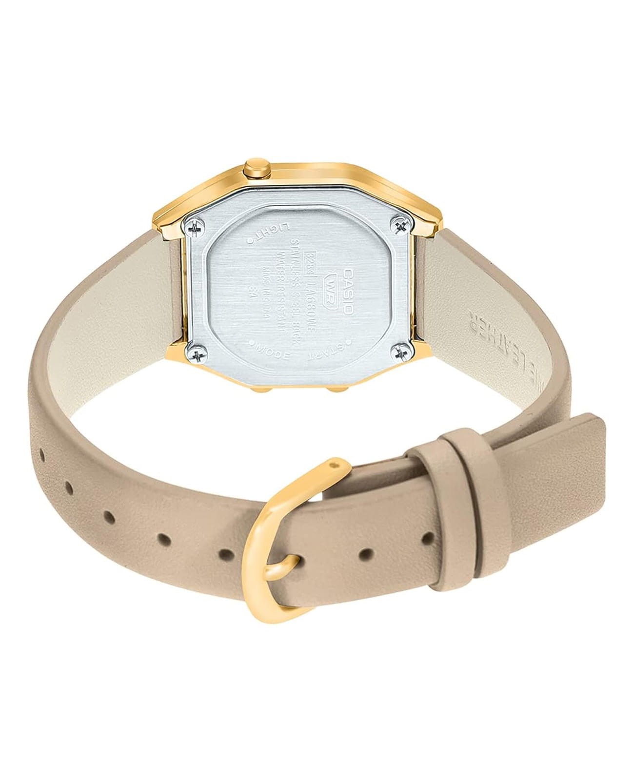 Японские женские часы-хронографХронографФункция позволяет измерять отрезки времени с особой точностью: часы, минуты, секунды. Верным признаком хронографа является наличие на циферблате 3 дополнительных окошек-счётчиков. с органическим стеклом Casio VintageLA680WEGL-5EF, кварцевый механизм с высокой точностью. Корпус часов изготовлен из пластика. СекундомерСекундомерСекундоме́р — прибор, способный измерять интервалы времени с точностью до долей секунды. с точностью измерения 1/100 секунды и измерением 1 ч. 12-ти и 24-х часовой формат времени. БудильникБудильникБуди́льник — часы, в заданный момент времени подающие звуковой, световой и/или в редких случаях другой сигнал., ежечасный сигнал. Автоматический календарь: число, день недели. Батарея рассчитана на 5 лет. Класс водозащиты: 30 метров, позволит защитить корпус от случайных брызг или капель дождя. Кожаный ремешок на стандартной застежке.