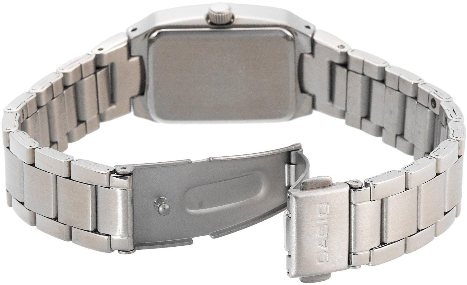 Женские стильные часы Casio LTP-1165A-1Cс минеральным стекломМинеральное стеклоМинеральное стекло представляет собой искусственно выращенный минерал кварца. Такое стекло отличается особой устойчивостью к повреждениям и царапинам. Уступает по некоторым качествам сапфировому стеклу. устойчивым к возникновению царапин. Стекло имеет сферическую поверхность. Браслет и корпус из нержавеющей стали. Стальной браслет на раскладной застёжкеРаскладная застёжкаТакой тип застёжки используется только на браслетах из металла. Она никогда не раскрывается полностью, происходит разделение на 2 и более частей. Раскладывающая застёжка снизит вероятность потери часов к минимуму..Срок службы батареи 3 года. Точность хода: не хуже +/-20 секунд в месяц.