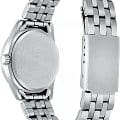 Циферблат дополнен лаконичным узором, часы отлично смотрятся в дополнении к повседневному образу. Циферблат защищен минеральным стекломМинеральное стеклоМинеральное стекло представляет собой искусственно выращенный минерал кварца. Такое стекло отличается особой устойчивостью к повреждениям и царапинам. Уступает по некоторым качествам сапфировому стеклу.. Полезными опциями являются отображение даты и дня недели, люминесцентная подсветкаЛюминесцентное покрытиеПозволяет считывать показания времени в темноте. Производители наносят на стрелки, часовые индексы, безель или поверхность циферблата светонакопительный состав, дающий холодное свечение.. Японский кварцевый механизм обеспечивает высокую точность хода +/- 20 сек/мес. Модель сделана из нержавеющей стали. Браслет с раскладной застёжкойРаскладная застёжкаТакой тип застёжки используется только на браслетах из металла. Она никогда не раскрывается полностью, происходит разделение на 2 и более частей. Раскладывающая застёжка снизит вероятность потери часов к минимуму..