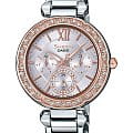 Женские японские часы Casio Sheen SHE-3061SG-4AUDR, кварцевый механизм с высокой точностью. Класс водозащиты: 50 метров, позволит защитить корпус от случайных брызг или капель дождя. Круглый стальной корпус изготовлен из нержавеющей стали. Безель с IP-покрытиемIP-покрытиеМетод ионного напыления. Демонстрирует повышенную устойчивость к истиранию, окислению и химическим веществам. Под воздействием высокого давления и температуры около 1500°C молекулы металла надёжно соединяются с частицами корпуса часов. украшенный кристаллами. Стрелки с люминесцентной подсветкойЛюминесцентное покрытиеПозволяет считывать показания времени в темноте. Производители наносят на стрелки, часовые индексы, безель или поверхность циферблата светонакопительный состав, дающий холодное свечение.. На маленьких циферблатах информация о дате. Рифленая заводная головка. Полированный стальной браслет имеет раскладывающуюся застежку.