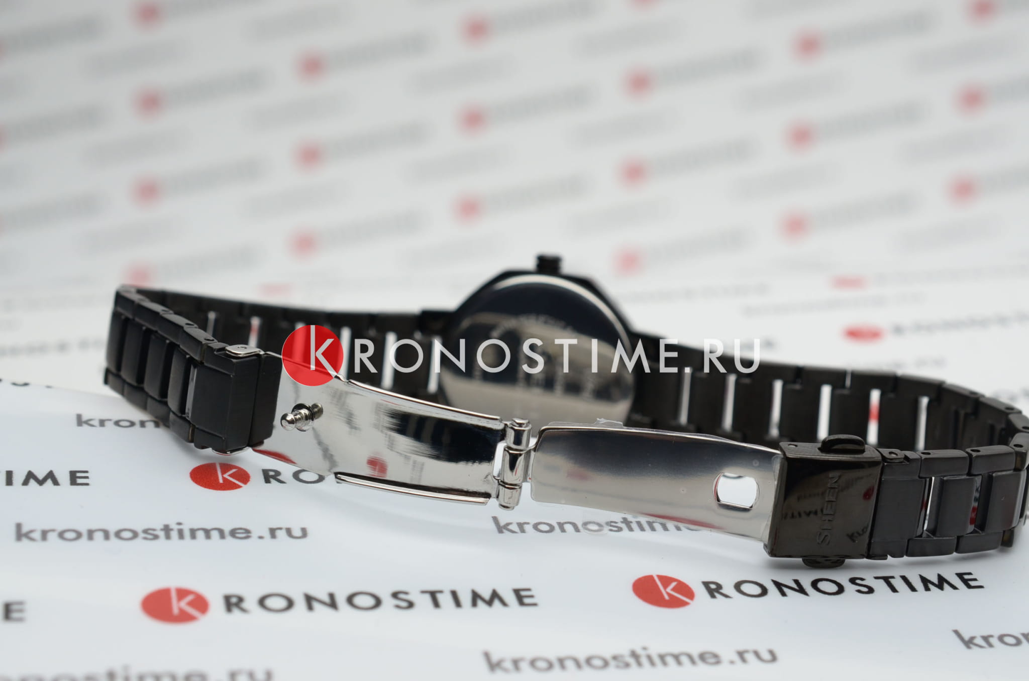 Японские женские часы с минеральным стекломМинеральное стеклоМинеральное стекло представляет собой искусственно выращенный минерал кварца. Такое стекло отличается особой устойчивостью к повреждениям и царапинам. Уступает по некоторым качествам сапфировому стеклу. Casio Sheen SHE-4543BD-1AUER, кварцевый механизм с высокой точностью. Класс водозащиты: 50 метров, позволит защитить корпус от случайных брызг или капель дождя. Корпус часов изготовлен из стали с IP-покрытиемIP-покрытиеМетод ионного напыления. Демонстрирует повышенную устойчивость к истиранию, окислению и химическим веществам. Под воздействием высокого давления и температуры около 1500°C молекулы металла надёжно соединяются с частицами корпуса часов.. Раскладная застёжкаРаскладная застёжкаТакой тип застёжки используется только на браслетах из металла. Она никогда не раскрывается полностью, происходит разделение на 2 и более частей. Раскладывающая застёжка снизит вероятность потери часов к минимуму. с фиксатором.