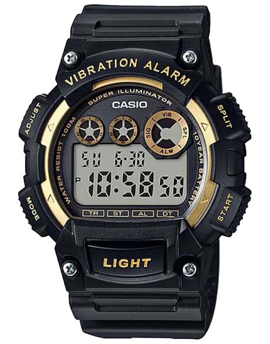 Спортивные мужские часы Casio Collection W-735H-1A2 со светодиодным ЖК циферблатом с функцией послесвечения. Цвет подсветки: белый. Световая и вибрационная индикация сигнала. 12-ти и 24-х часовой формат времени. Одновременное отображение времени двух часовых поясов. СекундомерСекундомерСекундоме́р — прибор, способный измерять интервалы времени с точностью до долей секунды. с точностью показаний 1/100с и временем измерения 24ч. Сплит-хронографСплит-хронографИспользуется для измерения продолжительности нескольких временных отрезков, начинающихся одновременно, а заканчивающихся в разное время.. Таймер обратного отсчета от 1с до 24ч. Функция включения/отключения звука. Батарея рассчитана на 10 лет. Стальная задняя крышка крепится на 4-х винтах. Ремешок с классической застежкой.