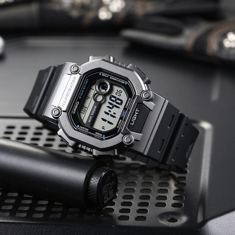 Японские мужские наручные часы Casio W-737H-1A2 c кварцевым механизмом высокой точности. Корпус часов изготовлен из пластика черного цвета. Функции: светодиодная подсветкаСветодиодная подсветкаСветодиодная или LED-подсветка обеспечивает появление яркого холодного свечения за счёт LED-элементов - маленьких лампочек. Они потребляют минимальное количество энергии, чаще всего можно встретить 1 светодиод, в нижней части циферблата., второй часовой пояс, секундомерСекундомерСекундоме́р — прибор, способный измерять интервалы времени с точностью до долей секунды., таймерТаймерОтсчитывает секунды в обратном направлении в заданном интервале времени., будильникБудильникБуди́льник — часы, в заданный момент времени подающие звуковой, световой и/или в редких случаях другой сигнал., автоматический календарь, 12/24 отображение времени. Органическое стекло, корпус и ремешок из полимерного пластика, водонепроницаемость (10 бар). Габариты (Ш x В x Г) 45,7 х 51,9 х 14. Вес 46 г.