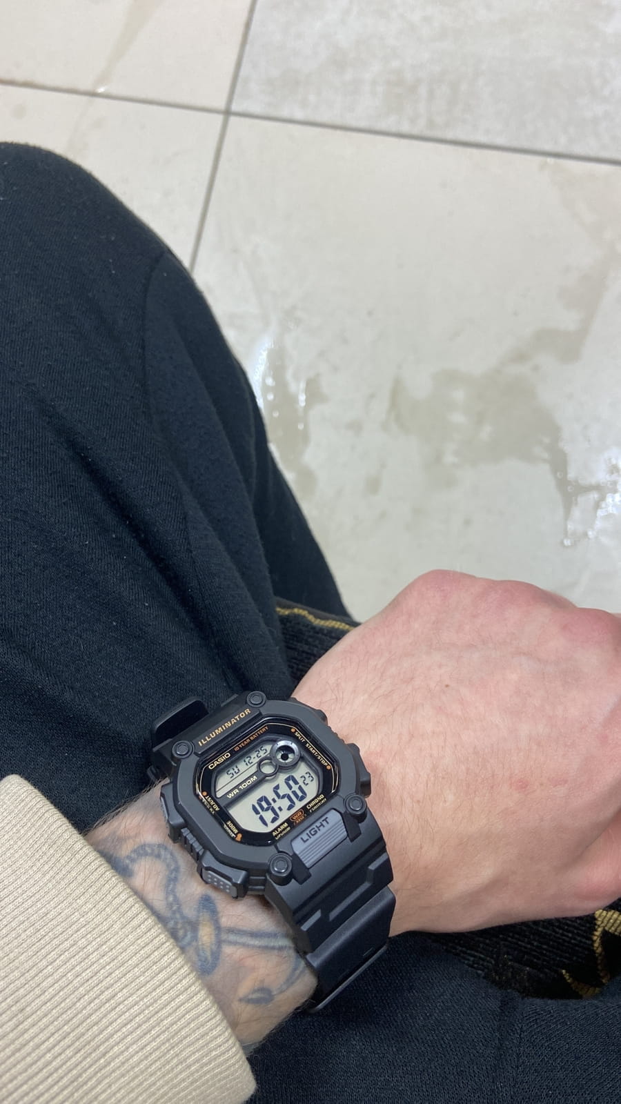 Плюс этих часов, что есть много различный функций. На этих часа есть календарь, будильник. Также есть подсветка, что очень помогает увидеть время в темноте. Очень легко настроить часы, это займет 2 минуты времени .Корпус выполнен из черного полимерного пластика. Браслет из полимерного материала черного цвета, стандартная застежка.