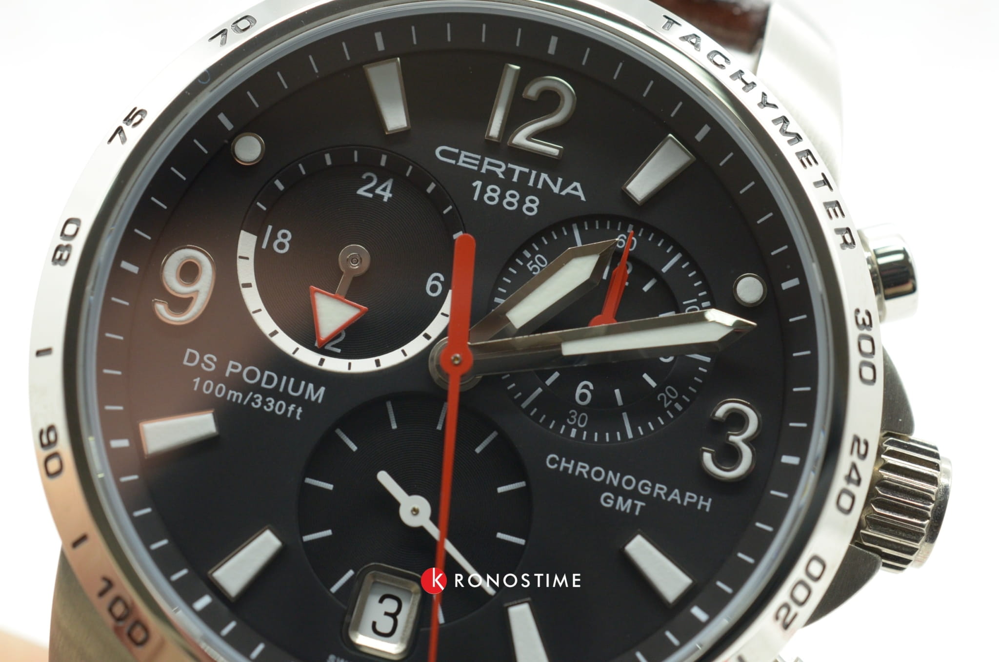Брендовый хронографХронографФункция позволяет измерять отрезки времени с особой точностью: часы, минуты, секунды. Верным признаком хронографа является наличие на циферблате 3 дополнительных окошек-счётчиков. наделён функциями: секундомер, тахиметрТахиметрРазмеченная шкала, располагается на ободке или безеле часов. Тахиметр позволяет рассчитать скорость на определённом участке пути, расстояние измеряется в километрах или милях., календарь, GMTGMTОтображение времени второго часового пояса.Такая функция особенно актуальна для путешественников и бизнесменов,которые общаются с людьми из разных стран,теперь вы всегда будете знать,какой час у вашего партнёра или близкого человека.. Ремешок из натуральной кожи актуален во все времена. Чёрный циферблат защищён сапфировым стеклом. Швейцарский кварцевый механизм ETA G10.961 отличается высокой точностью хода.