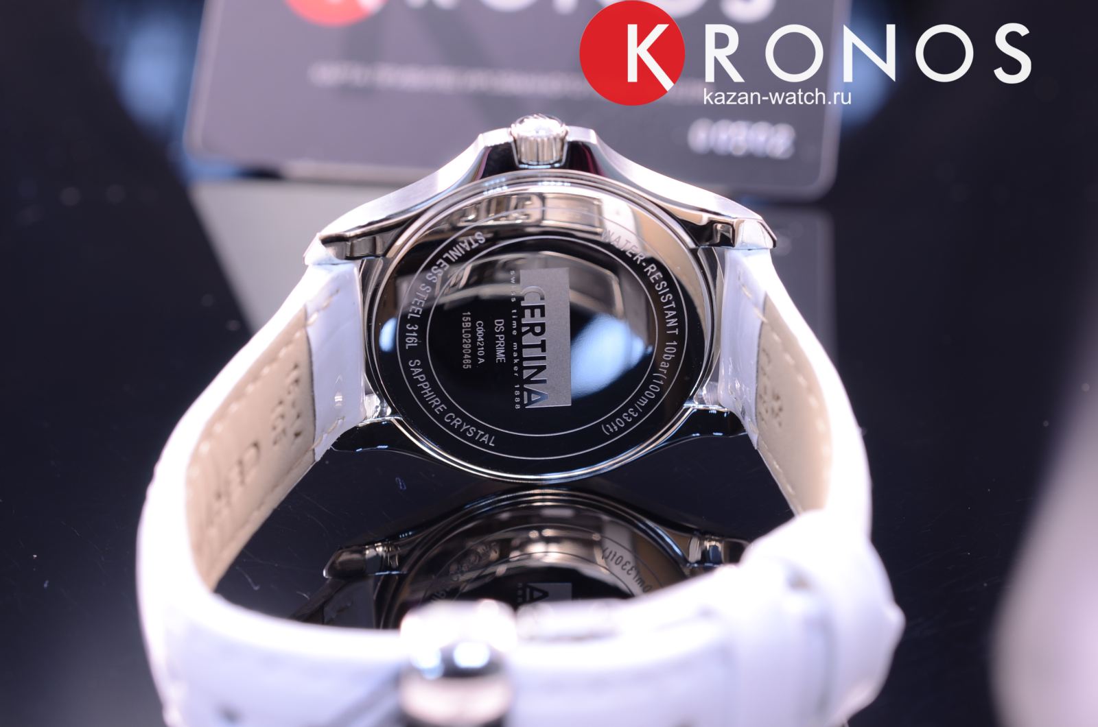 Вместо метки 12 часов использованы бриллианты оттенка Top Wesselton. Стальной корпус основан на концепции Двойной надёжности DS ConceptDS ConceptDouble Security Concept, обозначает двойную надёжность и безупречную точность часов Certina. Двойная система защиты подразумевает обеспечение максимальной устойчивости к ударам и высоких показателей водонепроницаемости.. Часы оснащены кварцевым швейцарским калибром ETA F05.111. Белый ремешок выполнен из натуральной кожи.
