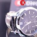 На чёрном узорчатом циферблате симметрично расположились функциональные окошки, на позиции 12 часов размещено 3 роскошных бриллианта оттенка Top Wesselton. ХронографХронографФункция позволяет измерять отрезки времени с особой точностью: часы, минуты, секунды. Верным признаком хронографа является наличие на циферблате 3 дополнительных окошек-счётчиков. отличается повышенной точностью хода благодаря оснащению швейцарским кварцевым калибром ETA G10.211. Классический ремешок из натуральной кожи уместно смотрится в любой ситуации. Антибликовая обработка стекла из сапфира. Водостойкость до 10 бар. Ударопрочный корпусУдаропрочный корпусМеханизм заключён в корпус, выполненный из современных материалов, устойчивых к ударам, механическим повреждениям и падению с высоты: инновационный пластик, карбон, нержавеющая сталь, титан. из стали 316L с антикоррозионными свойствами. Люминесцентная подсветкаЛюминесцентное покрытиеПозволяет считывать показания времени в темноте. Производители наносят на стрелки, часовые индексы, безель или поверхность циферблата светонакопительный состав, дающий холодное свечение.. Безопасная . Секундомер, отображение числа. Диаметр корпуса: 39 мм.