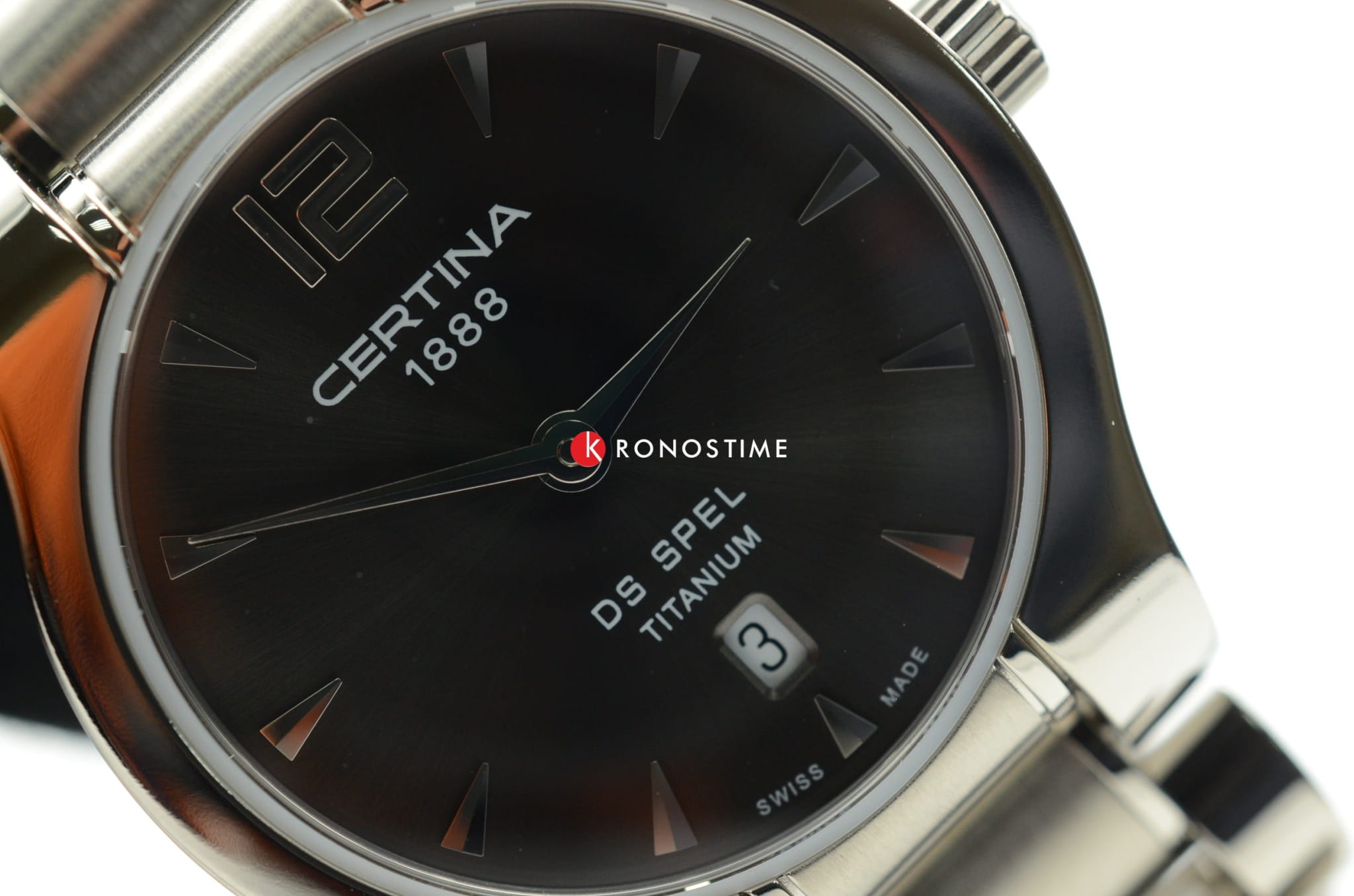 С виду женственная модель внутри – крепкий орешек. Корпус с концепцией DSDS ConceptDouble Security Concept, обозначает двойную надёжность и безупречную точность часов Certina. Двойная система защиты подразумевает обеспечение максимальной устойчивости к ударам и высоких показателей водонепроницаемости. выполнен из прочного гипоаллергенного титана. Антрацитовый циферблат защищён сапфировым стеклом, устойчивым к царапинам. Водозащита WR 100. Отображение числа.