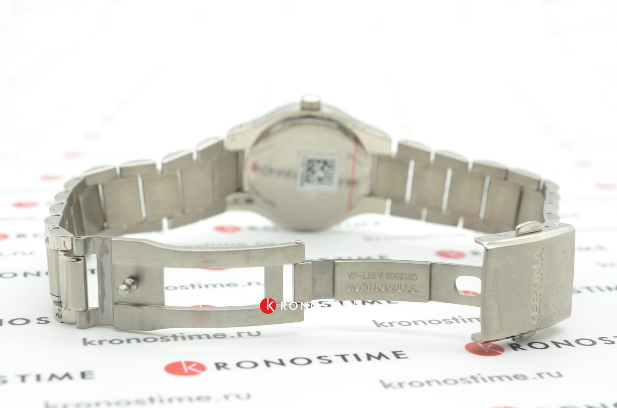 С виду женственная модель внутри – крепкий орешек. Корпус с концепцией DSDS ConceptDouble Security Concept, обозначает двойную надёжность и безупречную точность часов Certina. Двойная система защиты подразумевает обеспечение максимальной устойчивости к ударам и высоких показателей водонепроницаемости. выполнен из прочного гипоаллергенного титана. Перламутровый циферблат защищён сапфировым стеклом. Водозащита WR 100. Отображение числа.