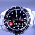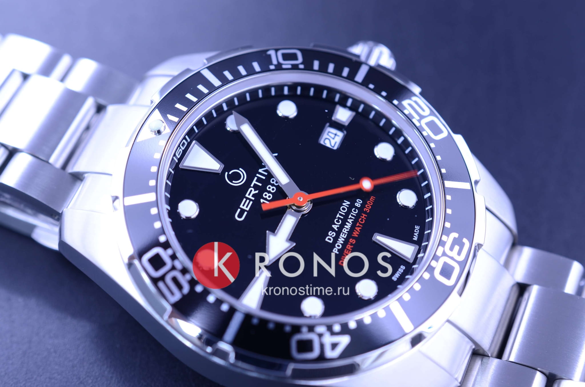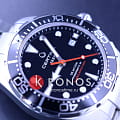 Стильный аксессуар воплощает собой дайверскую тематику, он способен сохранять водостойкость при давлении до 30 бар. Лаконично выглядит чёрный циферблат с красной секундной стрелкой в сочетании с серебристым блеском нержавеющей стали, из которой изготовлены ударопрочный корпусУдаропрочный корпусМеханизм заключён в корпус, выполненный из современных материалов, устойчивых к ударам, механическим повреждениям и падению с высоты: инновационный пластик, карбон, нержавеющая сталь, титан. и браслет. Наручные часы оснащены швейцарским механизмом ETA Powermatic 80Powermatic 80Эксклюзивный калибр от швейцарской компании ETA с увеличенным запасом хода до 80 часов за счёт удлинённой заводной пружины. Характеризуется улучшенной системой спуска со сниженным трением. с 80-часовым запасом хода. Завинчивающаяся заводная головка с системой защиты. Антибликовое покрытие сапфирового стекла. Люминесцентная подсветкаЛюминесцентное покрытиеПозволяет считывать показания времени в темноте. Производители наносят на стрелки, часовые индексы, безель или поверхность циферблата светонакопительный состав, дающий холодное свечение. стрелок и меток. Надёжная застежка с фиксатором и удлинением для дайверовУдлинение для дайверовЗастёжка с удлинением для дайверов представляет собой безопасное крепление, которое позволяет надевать часы поверх гидрокостюма. Гибкая застёжка удлиняется на 1-2 миллиметра.. Однонаправленно вращающийся алюминиевый безельБезельВнешний ободок, закрепляющий стекло. В спортивных часах так называется поворотное кольцо с делениями на циферблате, выполняет роль таймера – замеряет отрезки времени на шкале. Неподвижный безель – элемент декора. Однонаправленно вращающийся безель на дайверских часах позволяет фиксировать моменты погружения и выныривания на поверхность.. Диаметр корпуса: 43 мм.
