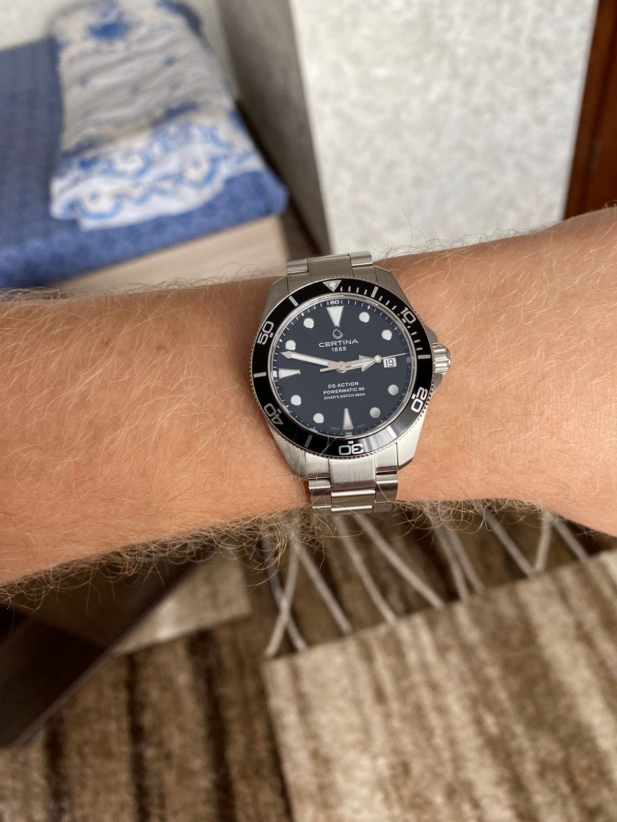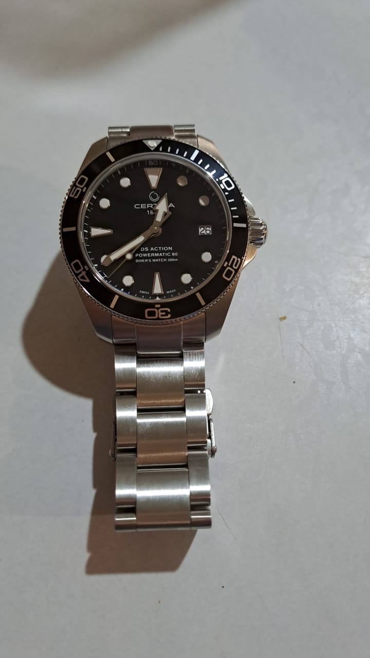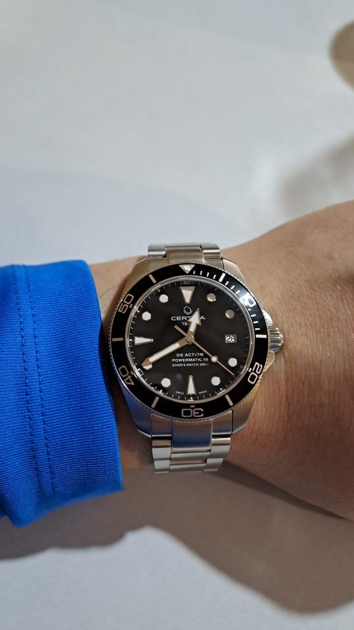При выборе модели мне хотелось швейцарские часы с диаметром 38-39 мм. Я долго искал подходящий вариант, пока мне не попалась на глаза модель бренда Certina. И тут всё сошлось. Модель DS Action - это сертифицированные дайверские часы от Швейцарского бренда с богатой историей. Качество исполнения великолепное. Характеристики - на высшем уровне. Единственное, чего, может быть, не хватает, это безеля из керамики. Доставка от магазина Kronostime была быстрая. Часы пришли в идеальной заводской упаковке. Покупкой очень доволен. Спасибо!