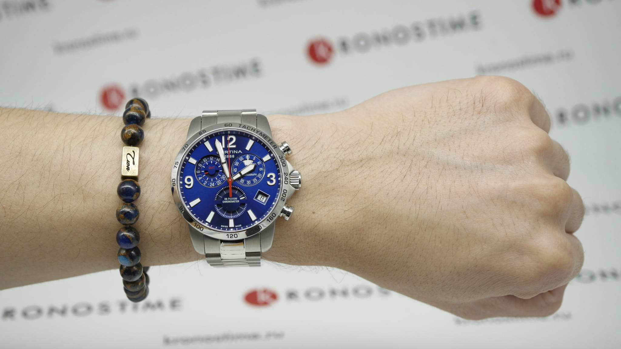 Наручные часы-хронометр сочетают в себе классический и спортивный стиль. Серебристые стальные браслет и ударопрочный корпусУдаропрочный корпусМеханизм заключён в корпус, выполненный из современных материалов, устойчивых к ударам, механическим повреждениям и падению с высоты: инновационный пластик, карбон, нержавеющая сталь, титан. привлекательно гармонируют с яркой деталью в виде синего циферблата. Высокая точность хода швейцарского кварцевого механизма ETA G10.962 Precidrive™Precidrive™Инновационный кварцевый механизм Certina. Часы, оснащённые этим швейцарским калибром, приравниваются к точности к сертифицированным хронометрам, точность хода составляет +/-10 секунд в год. (минимальная погрешность +/-10 секунд в год) подтверждается документом – сертификатом COSCСертификат COSCОфициальный сертификат, подтверждающий то, что часы ходят с особо высокой точностью. Для получения документа часы подвергаются тестовым испытаниям, разработанным швейцарским институтом тестирования хронометров COSC. Допустимая норма для механических часов -4/+6 секунд в день, для кварцевых моделей +/- 0,07 секунд в день.. Надпись DS ConceptDS ConceptDouble Security Concept, обозначает двойную надёжность и безупречную точность часов Certina. Двойная система защиты подразумевает обеспечение максимальной устойчивости к ударам и высоких показателей водонепроницаемости. свидетельствует о противоударности модели и повышенной водонепроницаемости 200 метров. Стекло из сапфира. Стрелки и метки с люминесцентным покрытиемЛюминесцентное покрытиеПозволяет считывать показания времени в темноте. Производители наносят на стрелки, часовые индексы, безель или поверхность циферблата светонакопительный состав, дающий холодное свечение.. Водостойкость 100 метров. Заводная головка с защитой. Секундомер, GMTGMTОтображение времени второго часового пояса.Такая функция особенно актуальна для путешественников и бизнесменов,которые общаются с людьми из разных стран,теперь вы всегда будете знать,какой час у вашего партнёра или близкого человека., отображение числа, индикатор EOLEOLПредставляет собой систему, уведомляющую владельца часов о необходимости замены элемента питания. За 2 недели до полного разряда батарейки секундная стрелка перестаёт ходить чётко и начинает перепрыгивать на 3-4 деления., высокоточный хронографХронографФункция позволяет измерять отрезки времени с особой точностью: часы, минуты, секунды. Верным признаком хронографа является наличие на циферблате 3 дополнительных окошек-счётчиков.. Диаметр корпуса: 42 мм.