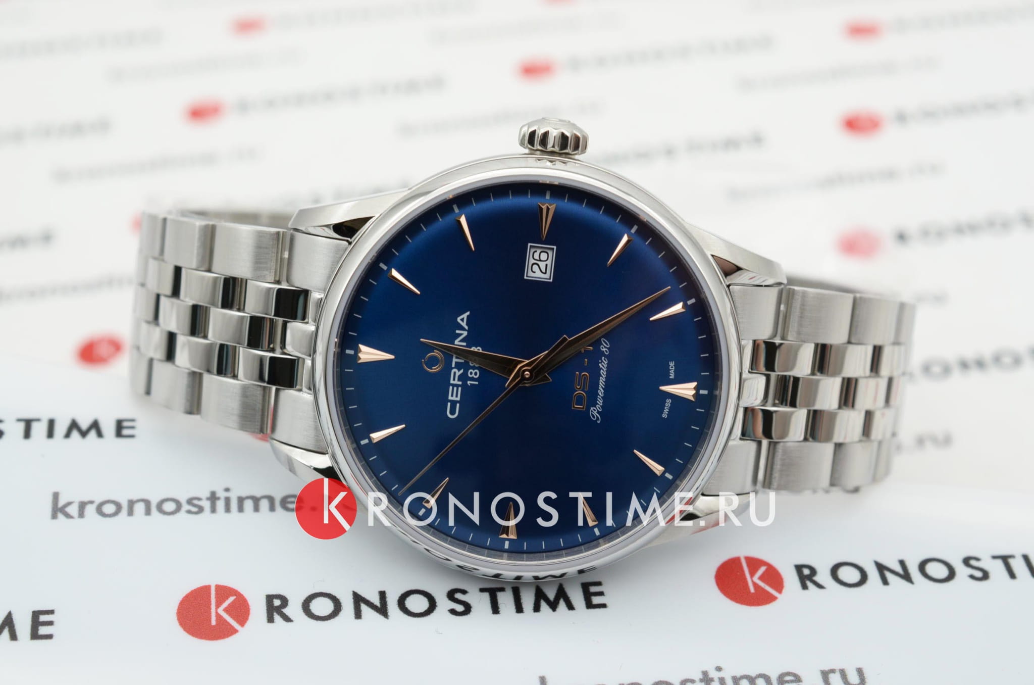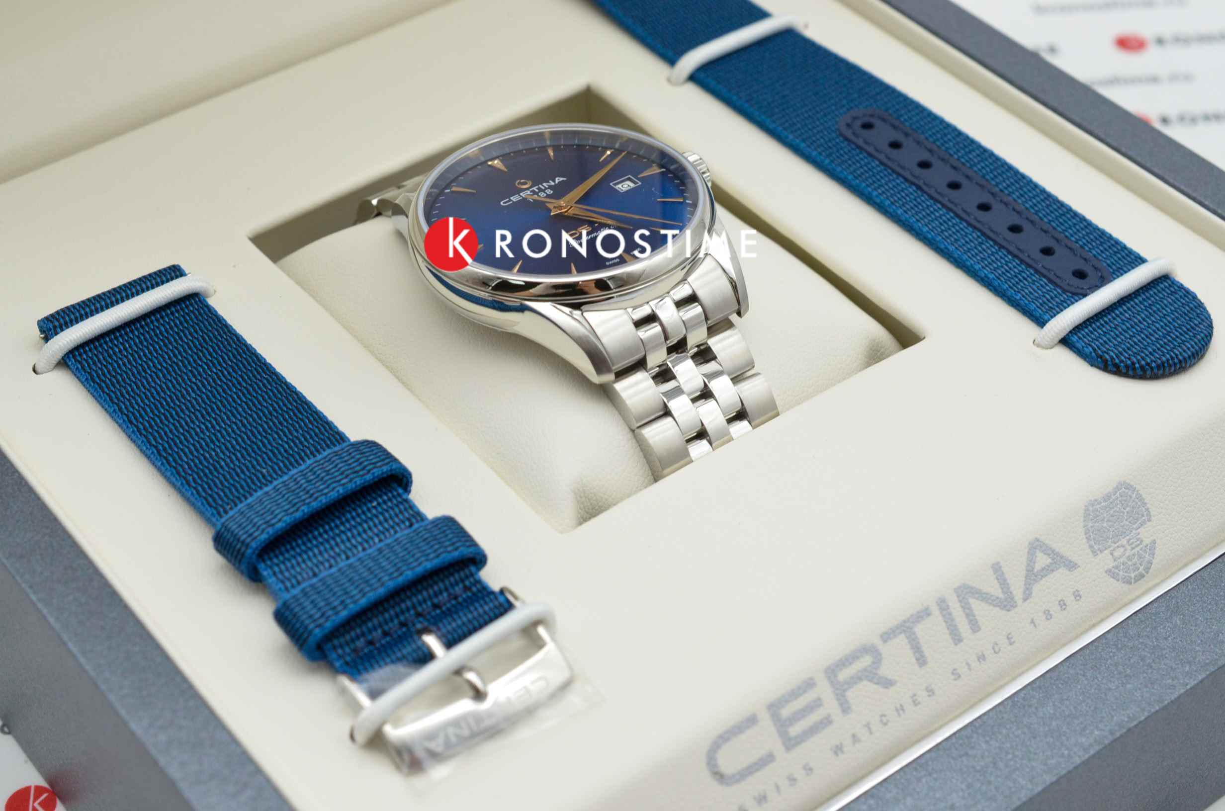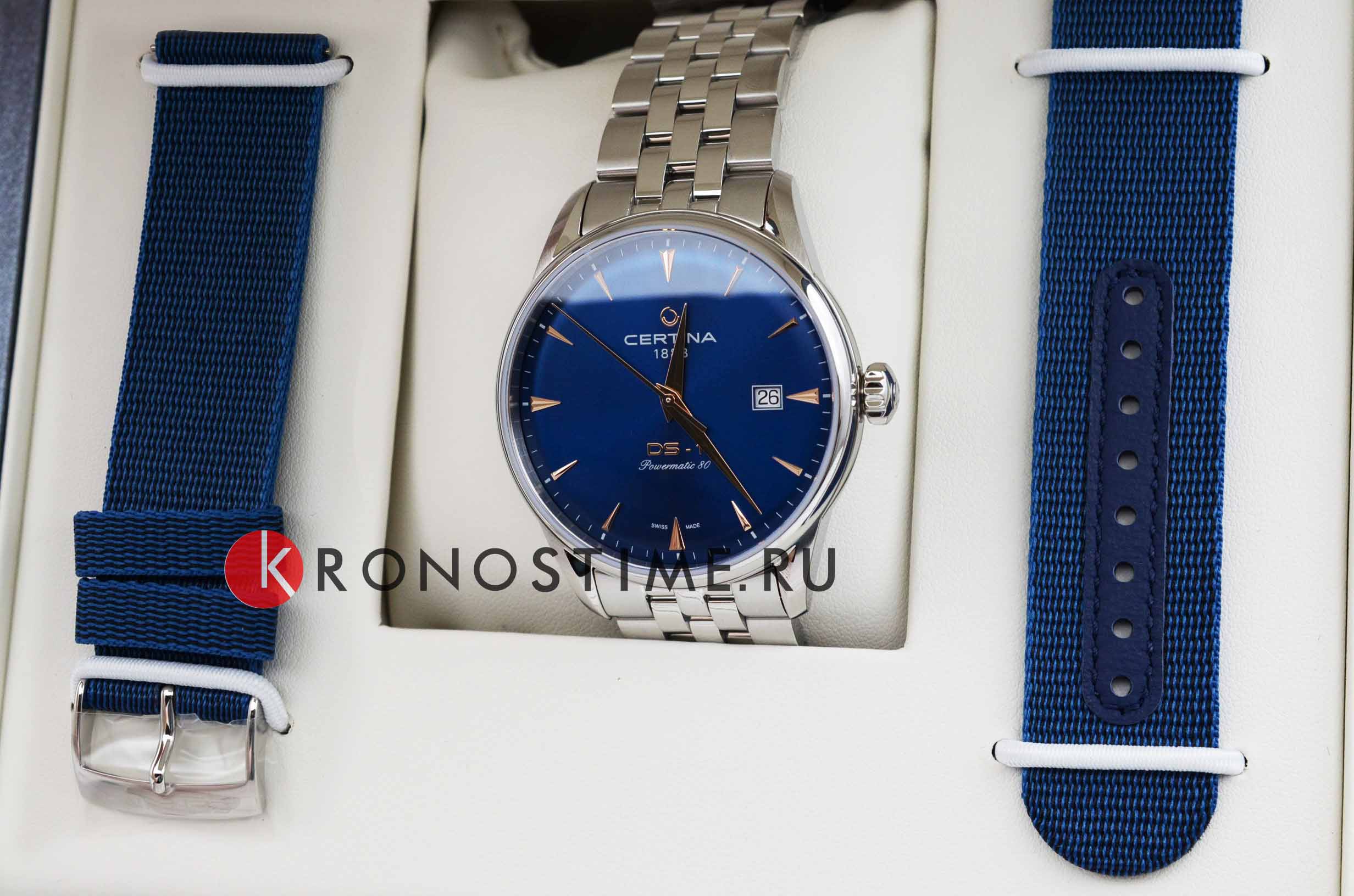 Аксессуар выполнен в классическом стиле, элегантно смотрится сатинированный синий циферблат. Надёжный стальной корпус дополнен уплотнительным кольцом в соответствии с концепцией Двойной Надёжности DSDS ConceptDouble Security Concept, обозначает двойную надёжность и безупречную точность часов Certina. Двойная система защиты подразумевает обеспечение максимальной устойчивости к ударам и высоких показателей водонепроницаемости.. Он защищает швейцарский автоматический механизм ETA Powermatic 80Powermatic 80Эксклюзивный калибр от швейцарской компании ETA с увеличенным запасом хода до 80 часов за счёт удлинённой заводной пружины. Характеризуется улучшенной системой спуска со сниженным трением. с увеличенным запасом хода до 80 часов. Калибр дополнен кремниевой спиралью Nivachron™, устраняющей действие магнитных полей. Выпуклое сапфировое стекло имеет покрытие антиблик. Часы водонепроницаемы до 100 метров. Браслет оснащён системой быстрой замены. В нижней части циферблата размещена крупная апертура даты. Диаметр корпуса: 40 мм.