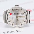 Серебристый циферблат дополнен люминесцентными стрелками и метками с покрытием Super-LumiNova®, что гарантирует отличную видимость в условиях низкой освещённости. Окошко даты на отметке «3 часа» добавляет удобства.
