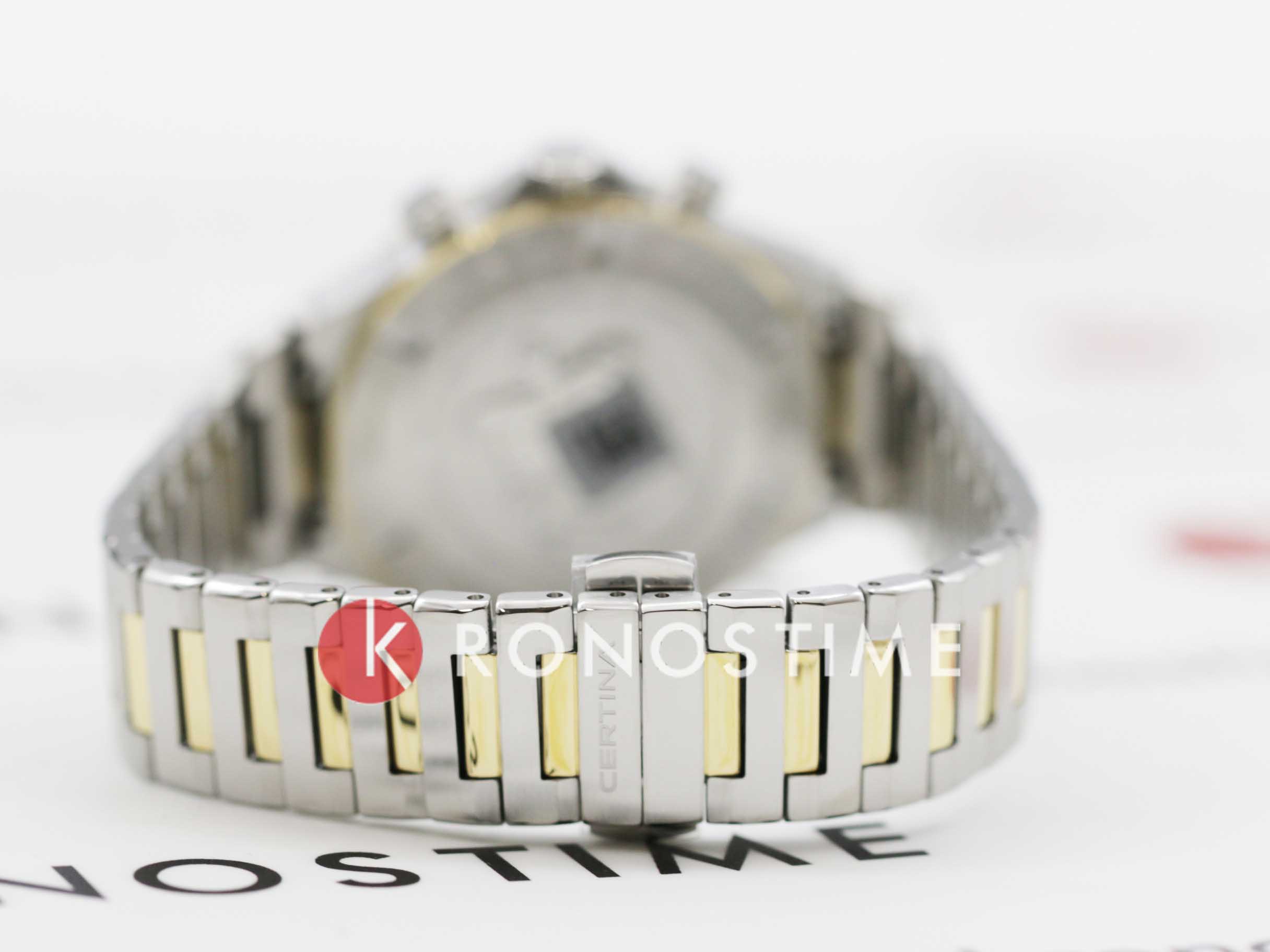 Certina DS-7 Chronograph ХронографФункция позволяет измерять отрезки времени с особой точностью: часы, минуты, секунды. Верным признаком хронографа является наличие на циферблате 3 дополнительных окошек-счётчиков. C043.417.22.031.00 – часы для поклонников ярких аксессуаров. И корпус, и браслет изготовлены из высококачественной нержавеющей стали 316L с PVD-покрытиемPVDУльтратонкое покрытие наносится в технике вакуумного напыления, сочетает в себе нитрид титана особой прочности со слоем золота или оксида хрома. Несёт в себе декоративную или защитную функцию.. Под твердым сапфировым стекломСапфировое стеклоПрочный и надёжный материал из кристалла сапфира синтетического происхождения, характеризующийся особой твёрдостью и устойчивостью к царапинам и повреждениям. с антибликовым покрытиемАнтибликовое покрытиеСлой оксида металла в 0,13-0,3 микрон, благодаря которому стекло часов не бликует и не отражает свет. Антибликовое покрытие уменьшает отражение света в 10 раз, обеспечивая отличную читаемость показателей циферблата. находится серебристый циферблат и на котором вы найдете окошко даты в положении 4 часа, а также маркировку, покрытую люминесцентным покрытиемЛюминесцентное покрытиеПозволяет считывать показания времени в темноте. Производители наносят на стрелки, часовые индексы, безель или поверхность циферблата светонакопительный состав, дающий холодное свечение. Super-LumiNova. Все это приводится в действие автоматическим механизмом Precidrive™Precidrive™Инновационный кварцевый механизм Certina. Часы, оснащённые этим швейцарским калибром, приравниваются к точности к сертифицированным хронометрам, точность хода составляет +/-10 секунд в год..611 с пружиной Nivachron™Nivachron™Специально разработанный инновационный сплав Nivachron™ повышает устойчивость часов к воздействию магнитных полей.. Класс водозащиты: 100 метров, позволит плавать, нырять и заниматься другими водными видами спорта. Стальной браслет на застёжке-бабочке с кнопкамиЗастёжка "бабочка"Такой вид застёжки дополняется предохранителями, помогающими избежать случайного раскрытия браслета. Обладают изящным исполнением. .