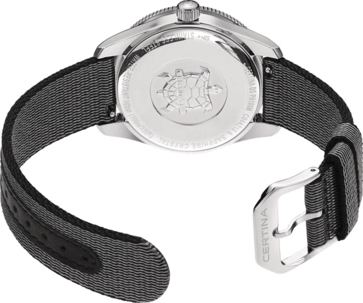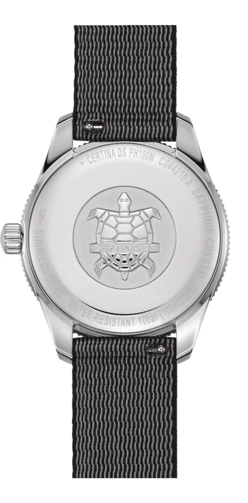 Certina DS PH100M Lady C044.210.18.051.00 – часы для поклонников ярких аксессуаров. Корпус изготовлен из высококачественной нержавеющей стали 316L с . Под твердым сапфировым стекломСапфировое стеклоПрочный и надёжный материал из кристалла сапфира синтетического происхождения, характеризующийся особой твёрдостью и устойчивостью к царапинам и повреждениям. с антибликовым покрытиемАнтибликовое покрытиеСлой оксида металла в 0,13-0,3 микрон, благодаря которому стекло часов не бликует и не отражает свет. Антибликовое покрытие уменьшает отражение света в 10 раз, обеспечивая отличную читаемость показателей циферблата. находится черный циферблат на котором вы найдете окошко даты в положении 3 часа, а также маркировку, покрытую люминесцентным покрытиемЛюминесцентное покрытиеПозволяет считывать показания времени в темноте. Производители наносят на стрелки, часовые индексы, безель или поверхность циферблата светонакопительный состав, дающий холодное свечение. Super-LumiNova. Класс водозащиты: 100 метров, позволит плавать, нырять и заниматься другими водными видами спорта. Тканевый ремешок. БезельБезельВнешний ободок, закрепляющий стекло. В спортивных часах так называется поворотное кольцо с делениями на циферблате, выполняет роль таймера – замеряет отрезки времени на шкале. Неподвижный безель – элемент декора. Однонаправленно вращающийся безель на дайверских часах позволяет фиксировать моменты погружения и выныривания на поверхность. из нержавеющей стали с PVD-покрытиемPVDУльтратонкое покрытие наносится в технике вакуумного напыления, сочетает в себе нитрид титана особой прочности со слоем золота или оксида хрома. Несёт в себе декоративную или защитную функцию.