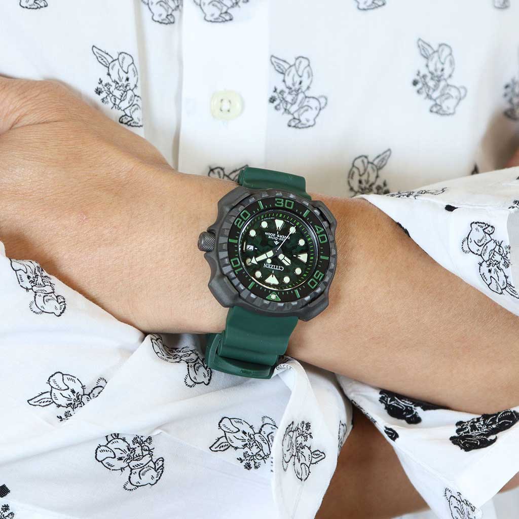 Мужские часы Citizen Promaster BN0228-06W дайверские часы станут верным спутником в вашей энергичной и спортивной жизни. Корпус из титана (Super Titanium) с DLC-покрытиемDLC-покрытиеDiamond like carbon - одно из лучших видов покрытия, представляющее собой углерод с алмазными свойствами. На поверхность материала наносятся распавшиеся молекулы углерода, превращающиеся в плёнку из алмазоподобных связей, которая перенимает твёрдость алмаза. диаметром 47,9 мм идеально сбалансирован. Минеральное стеклоМинеральное стеклоМинеральное стекло представляет собой искусственно выращенный минерал кварца. Такое стекло отличается особой устойчивостью к повреждениям и царапинам. Уступает по некоторым качествам сапфировому стеклу. обеспечивает отличную защиту циферблата от царапин. Часы работают на основе кварцевого механизма, питание от солнечной энергии, запас энергии на 180 дней. Полиуретановый ремешок на стандартной застёжке идеально дополняют дизайн часов, обеспечивая комфортное ношение. Стрелки и метки на циферблате имеют люминесцентное покрытиеЛюминесцентное покрытиеПозволяет считывать показания времени в темноте. Производители наносят на стрелки, часовые индексы, безель или поверхность циферблата светонакопительный состав, дающий холодное свечение. позволяющее легко определять время даже в темноте. Титановый безельБезельВнешний ободок, закрепляющий стекло. В спортивных часах так называется поворотное кольцо с делениями на циферблате, выполняет роль таймера – замеряет отрезки времени на шкале. Неподвижный безель – элемент декора. Однонаправленно вращающийся безель на дайверских часах позволяет фиксировать моменты погружения и выныривания на поверхность. с Duratect MRK покрытием вращается в одном направлении. Функция индикации заряда (EOL) и предотвращения перезарядки. Окошко даты находится в положении 3 часа. Часы обладают впечатляющей водонепроницаемостью до 200WR, что делает их идеальными для плавания, ныряния и погружений с аквалангом.