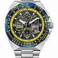 Citizen Promaster JY8125-54L часы-хронографХронографФункция позволяет измерять отрезки времени с особой точностью: часы, минуты, секунды. Верным признаком хронографа является наличие на циферблате 3 дополнительных окошек-счётчиков. с секундомеромСекундомерСекундоме́р — прибор, способный измерять интервалы времени с точностью до долей секунды. спортивного дизайна с высоким уровнем водозащиты. Корпус из нержавеющей стали диаметром 45,7 мм идеально сбалансирован. Сапфировое стеклоСапфировое стеклоПрочный и надёжный материал из кристалла сапфира синтетического происхождения, характеризующийся особой твёрдостью и устойчивостью к царапинам и повреждениям. с антибликовым покрытием обеспечивает отличную защиту циферблата от царапин. Часы работают на основе кварцевого механизма, питание от солнечной энергии. Стальной браслет на раскладной застёжкеРаскладная застёжкаТакой тип застёжки используется только на браслетах из металла. Она никогда не раскрывается полностью, происходит разделение на 2 и более частей. Раскладывающая застёжка снизит вероятность потери часов к минимуму. идеально дополняют дизайн часов, обеспечивая комфортное ношение. Стрелки и метки на циферблате имеют люминесцентное покрытиеЛюминесцентное покрытиеПозволяет считывать показания времени в темноте. Производители наносят на стрелки, часовые индексы, безель или поверхность циферблата светонакопительный состав, дающий холодное свечение. позволяющее легко определять время даже в темноте. Поворотный безельБезельВнешний ободок, закрепляющий стекло. В спортивных часах так называется поворотное кольцо с делениями на циферблате, выполняет роль таймера – замеряет отрезки времени на шкале. Неподвижный безель – элемент декора. Однонаправленно вращающийся безель на дайверских часах позволяет фиксировать моменты погружения и выныривания на поверхность. с IP-покрытиемIP-покрытиеМетод ионного напыления. Демонстрирует повышенную устойчивость к истиранию, окислению и химическим веществам. Под воздействием высокого давления и температуры около 1500°C молекулы металла надёжно соединяются с частицами корпуса часов.. Автоматический прием сигналов от радиовышек, расположенных в различных точках земного шара, которые передают временные сигналы от определенных атомных часов. Коррекция текущего времени радиосигналом на территории почти всей Европы, США, Японии и Китая. Функция индикации заряда (EOL) и предотвращения перезарядки. Мировое времяМировое время Полезное часовое усложнение, отображающее время в основных городах и известных областях по всему миру, оно связано с часовыми поясами, удобно для путешественников и бизнесменов. - 43 города, переход на зимнее и летнее время. Всемирное координированное время UTCUTCВсемирное кординационное время, не имеющее привязки к географическому положению Гринвича, основывается на атомном отсчёте времени. Регулировка времени осуществляется более точно, чем устаревшее GMT.
