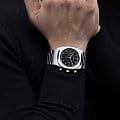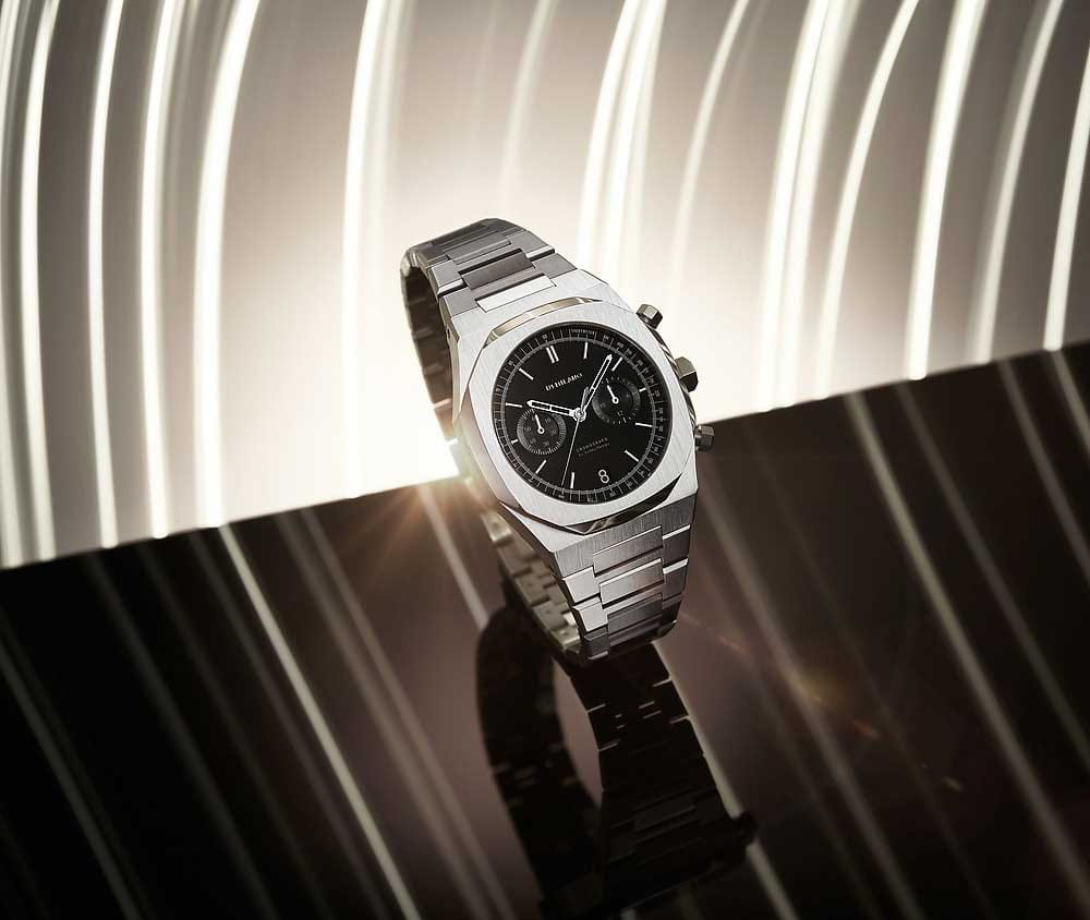 Элегантный хронограф D1 Milano Cronografo CHBJ08 New Black - идеальное воплощение мужественности и стиля. Этот многофункциональный аксессуар оснащен секундомером,тахиметромТахиметрРазмеченная шкала, располагается на ободке или безеле часов. Тахиметр позволяет рассчитать скорость на определённом участке пути, расстояние измеряется в километрах или милях. и двойным форматом времени, что делает его незаменимым компаньоном в повседневной жизни. Минималистичный дизайн циферблата с штриховыми метками, защищенный прочным сапфировым стекломСапфировое стеклоПрочный и надёжный материал из кристалла сапфира синтетического происхождения, характеризующийся особой твёрдостью и устойчивостью к царапинам и повреждениям., привлекает внимание своей сдержанной красотой. Надежная конструкция с задней крышкой на 8 винтах и стильный браслет с удобной застежкой обеспечивают комфорт при ношении. Каждый экземпляр уникален благодаря индивидуальному серийному номеру. New Black - это не просто часы, а статусный аксессуар, подчеркивающий безупречный вкус и внимание к деталям своего владельца.