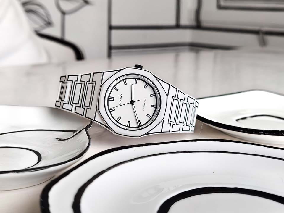 Часы D1 Milano Polycarbon PCBJ34 – молодежные часы в стиле унисекс для повседневных образов. Модель Shadow имеет бело-черный корпус из поликарбоната с покрытием Софт-Тач - тактильно очень приятного, бархатистого. Модель часов сделана в скетч-стиле, как будто нарисованный эскиз часов. Циферблат лаконичный с индексами в виде штрихов, защищен минеральным стекломМинеральное стеклоМинеральное стекло представляет собой искусственно выращенный минерал кварца. Такое стекло отличается особой устойчивостью к повреждениям и царапинам. Уступает по некоторым качествам сапфировому стеклу. с антибликовым покрытием. Стальная задняя крышка на 4 винтах, с изображением карандаша. Пластиковый браслет на застёжке «бабочка» с кнопкамиЗастёжка "бабочка"Такой вид застёжки дополняется предохранителями, помогающими избежать случайного раскрытия браслета. Обладают изящным исполнением. .