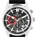 Мужские кварцевые часы Daniel Klein — это спортивный и функциональный аксессуар для активных мужчин. Корпус диаметром 43 мм выполнен из нержавеющей стали. Циферблат чёрного цвета выполнен по технологии Sunray («солнечные лучи») и оформлен штрихами и мечевидными стрелками в стиле Sword. Присутствуют индикаторы 24-часового формата времени и второго часового пояса (GMTВторой часовой поясФункция, позволяющая отображать время двух часовых поясов одновременно.). Окошко даты расположено между 4 и 5 часами. Стрелки и метки с люминесцентным покрытиемЛюминесцентное покрытиеПозволяет считывать показания времени в темноте. Производители наносят на стрелки, часовые индексы, безель или поверхность циферблата светонакопительный состав, дающий холодное свечение., обеспечивающим хорошую читаемость в темноте. Циферблат защищён минеральным стекломМинеральное стеклоМинеральное стекло представляет собой искусственно выращенный минерал кварца. Такое стекло отличается особой устойчивостью к повреждениям и царапинам. Уступает по некоторым качествам сапфировому стеклу.. Заводная головка рифлёная. Часы оснащены кожаным ремешком на классической пряжке. Водонепроницаемость 50 м позволяет использовать часы в повседневных условиях. Идеальный выбор для тех, кто ценит турецкое качество и универсальный дизайн.