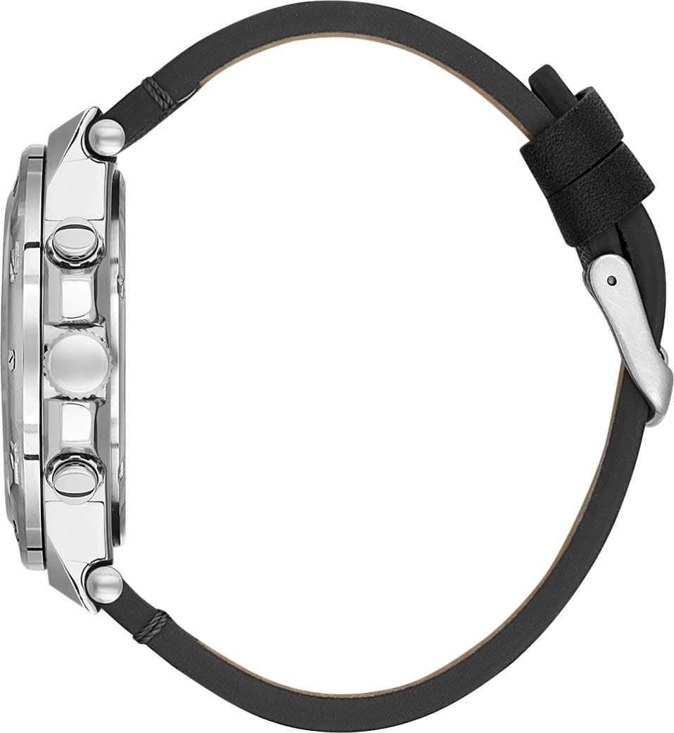 Мужские кварцевые часы-хронограф Daniel Klein — это удачное сочетание функциональности и элегантного дизайна. Корпус диаметром 45 мм выполнен из нержавеющей стали. БезельБезельВнешний ободок, закрепляющий стекло. В спортивных часах так называется поворотное кольцо с делениями на циферблате, выполняет роль таймера – замеряет отрезки времени на шкале. Неподвижный безель – элемент декора. Однонаправленно вращающийся безель на дайверских часах позволяет фиксировать моменты погружения и выныривания на поверхность. с метками в виде арабских цифр. Циферблат чёрного цвета имеет узор «соты», оформлен штрихами, стрелками и тремя субциферблатами хронографа. Присутствуют индикаторы 24-часового формата времени. Окошко даты расположено в положении 4 часов. Стрелки и метки с люминесцентным покрытиемЛюминесцентное покрытиеПозволяет считывать показания времени в темноте. Производители наносят на стрелки, часовые индексы, безель или поверхность циферблата светонакопительный состав, дающий холодное свечение., обеспечивающим хорошую читаемость в темноте. Циферблат защищён минеральным стекломМинеральное стеклоМинеральное стекло представляет собой искусственно выращенный минерал кварца. Такое стекло отличается особой устойчивостью к повреждениям и царапинам. Уступает по некоторым качествам сапфировому стеклу.. Заводная головка рифлёная, с защитой. Часы оснащены кожаным ремешком на классической пряжке. Водонепроницаемость 50 м позволяет использовать часы в повседневных условиях. Идеальный выбор для тех, кто ценит турецкое качество и универсальный дизайн.