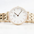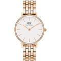 Женские наручные часы с минеральным стекломМинеральное стеклоМинеральное стекло представляет собой искусственно выращенный минерал кварца. Такое стекло отличается особой устойчивостью к повреждениям и царапинам. Уступает по некоторым качествам сапфировому стеклу. Daniel Wellington Petite DW00100666, кварцевый механизм с высокой точностью. Корпус часов изготовлен из стали с PVD-покрытиемPVDУльтратонкое покрытие наносится в технике вакуумного напыления, сочетает в себе нитрид титана особой прочности со слоем золота или оксида хрома. Несёт в себе декоративную или защитную функцию.. БезельБезельВнешний ободок, закрепляющий стекло. В спортивных часах так называется поворотное кольцо с делениями на циферблате, выполняет роль таймера – замеряет отрезки времени на шкале. Неподвижный безель – элемент декора. Однонаправленно вращающийся безель на дайверских часах позволяет фиксировать моменты погружения и выныривания на поверхность. с PVD-покрытиемPVDУльтратонкое покрытие наносится в технике вакуумного напыления, сочетает в себе нитрид титана особой прочности со слоем золота или оксида хрома. Несёт в себе декоративную или защитную функцию. украшен кристаллами Swarovski. Матовый циферблат украшен фирменным логотипом Daniel Wellington. Накладные метки в виде штрихов. Японский кварцевый механизм. Рифленая заводная головка. Класс водозащиты: 30 метров, позволит защитить корпус от случайных брызг или капель дождя. Стальной браслет с PVD-покрытиемPVDУльтратонкое покрытие наносится в технике вакуумного напыления, сочетает в себе нитрид титана особой прочности со слоем золота или оксида хрома. Несёт в себе декоративную или защитную функцию. на застёжке-бабочке с кнопкамиЗастёжка "бабочка"Такой вид застёжки дополняется предохранителями, помогающими избежать случайного раскрытия браслета. Обладают изящным исполнением. .