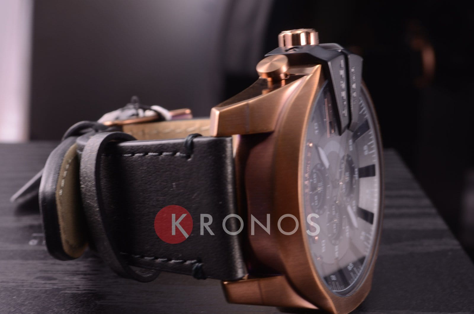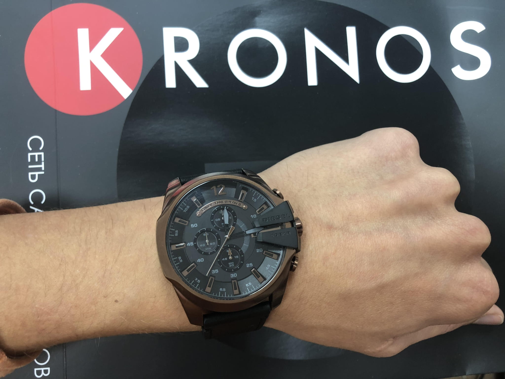 Мужские часы Diesel DZ4459 из коллекции Mega Chief Chronograph представляют собой спортивный хронографХронографФункция позволяет измерять отрезки времени с особой точностью: часы, минуты, секунды. Верным признаком хронографа является наличие на циферблате 3 дополнительных окошек-счётчиков. для дополнения повседневного образа.
