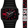 Мужские наручные часы Diesel DZ2191SET, кварцевый механизм с высокой точностью. Класс водозащиты: 30 метров, позволит защитить корпус от случайных брызг или капель дождя. Стрелки с люминесцентным покрытиемЛюминесцентное покрытиеПозволяет считывать показания времени в темноте. Производители наносят на стрелки, часовые индексы, безель или поверхность циферблата светонакопительный состав, дающий холодное свечение.. Класс водозащиты: 30 метров, позволит защитить корпус от случайных брызг или капель дождя. Корпус часов изготовлен из пластика. Рифленая заводная головка. Минеральное стеклоМинеральное стеклоМинеральное стекло представляет собой искусственно выращенный минерал кварца. Такое стекло отличается особой устойчивостью к повреждениям и царапинам. Уступает по некоторым качествам сапфировому стеклу., устойчивое к мелким механическим поврждениям. Силиконовый ремешок на стандартной застежке. В комплекте с часами идет фирменный браслет.