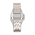 DKNY Brooklyn Maxi DK1L011M0085 —женские кварцевые часы, вдохновленные бунтарским духом Нью-Йорка. Корпус из нержавеющей стали диаметром 36 мм и минеральное стеклоМинеральное стеклоМинеральное стекло представляет собой искусственно выращенный минерал кварца. Такое стекло отличается особой устойчивостью к повреждениям и царапинам. Уступает по некоторым качествам сапфировому стеклу. обеспечивает защиту от царапин, а водонепроницаемость 5 ATM (50 метров) выдерживает активный ритм города. Металлический браслет с IP-покрытиемIP-покрытиеМетод ионного напыления. Демонстрирует повышенную устойчивость к истиранию, окислению и химическим веществам. Под воздействием высокого давления и температуры около 1500°C молекулы металла надёжно соединяются с частицами корпуса часов. на раскладной застёжкеРаскладная застёжкаТакой тип застёжки используется только на браслетах из металла. Она никогда не раскрывается полностью, происходит разделение на 2 и более частей. Раскладывающая застёжка снизит вероятность потери часов к минимуму. подчеркивает универсальность, сочетаясь с деловыми и повседневными образами. БезельБезельВнешний ободок, закрепляющий стекло. В спортивных часах так называется поворотное кольцо с делениями на циферблате, выполняет роль таймера – замеряет отрезки времени на шкале. Неподвижный безель – элемент декора. Однонаправленно вращающийся безель на дайверских часах позволяет фиксировать моменты погружения и выныривания на поверхность. инкрустирован кристаллами. Лаконичные линии, акцент на крупном формате и практичность делают модель идеальным выбором для женщин, ценящих дерзкий городской образ, сочетающий энергию мегаполиса с универсальной элегантностью.