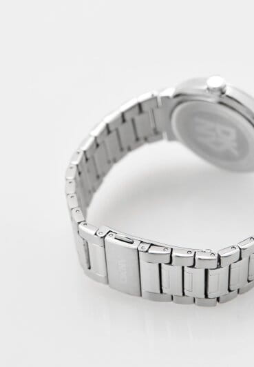 Элегантные женские наручные часы DKNY Eastside Logo DK1L023M0025 сочетают стиль и функциональность. Корпус из нержавеющей стали диаметром 36 мм и минеральное стеклоМинеральное стеклоМинеральное стекло представляет собой искусственно выращенный минерал кварца. Такое стекло отличается особой устойчивостью к повреждениям и царапинам. Уступает по некоторым качествам сапфировому стеклу. обеспечивает защиту от царапин, а водонепроницаемость до 50 метров делает модель практичной для активного отдыха или повседневной носки. Браслет из нержавеющей стали с раскладной застёжкойРаскладная застёжкаТакой тип застёжки используется только на браслетах из металла. Она никогда не раскрывается полностью, происходит разделение на 2 и более частей. Раскладывающая застёжка снизит вероятность потери часов к минимуму. надежно фиксирует часы на руке. БезельБезельВнешний ободок, закрепляющий стекло. В спортивных часах так называется поворотное кольцо с делениями на циферблате, выполняет роль таймера – замеряет отрезки времени на шкале. Неподвижный безель – элемент декора. Однонаправленно вращающийся безель на дайверских часах позволяет фиксировать моменты погружения и выныривания на поверхность. инкрустирован кристаллами. Эта модель станет идеальным дополнением вашего гардероба, подчеркнув индивидуальный стиль и добавляя нотки роскоши в любой образ.