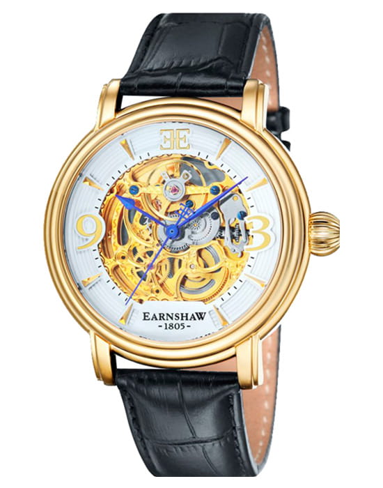 Мужские английские механические часы-скелетоны Earnshaw ES-8011-04, механический механизм (автоматический калибр) с высокой точностью. Класс водозащиты: 50 метров, позволит защитить корпус от случайных брызг или капель дождя. Корпус часов изготовлен из стали, цвета.