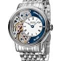 Мужские механические часы с ручным подзаводом Epos из коллекции Oeuvre d'art — это уникальное произведение часового искусства. Корпус диаметром 43,5 мм и толщиной 11 мм выполнен из нержавеющей стали 316L. Циферблат белого цвета с винтажным дизайном оформлен печатными римскими цифрами чёрного цвета и стрелками в стиле «яблоко Бреге» с синением. Циферблат защищён сапфировым стекломСапфировое стеклоПрочный и надёжный материал из кристалла сапфира синтетического происхождения, характеризующийся особой твёрдостью и устойчивостью к царапинам и повреждениям.. Часовая и минутная стрелки смещены от центра, а малая секундная стрелка пульсометра выведена на обратную сторону корпуса. Механизм — швейцарский калибр ETA Unitas 6497 с ручным подзаводом, частично скелетонизированный, с декорированными мостами, гравировкой и жемчужным зернением. Заводная головка — винтовая, формы «луковица». Модель оснащена стальным браслетом из литых звеньев в 7 рядов с застёжкой «бабочка» с кнопкамиЗастёжка "бабочка"Такой вид застёжки дополняется предохранителями, помогающими избежать случайного раскрытия браслета. Обладают изящным исполнением. . Функция пульсометра позволяет измерять частоту сердечных сокращений. Модель выпущена ограниченной серией — 888 экземпляров. Водонепроницаемость 50 м позволяет использовать часы в повседневных условиях. Гарантия — 24 месяца. Уникальный выбор для ценителя редких и эксклюзивных механизмов.