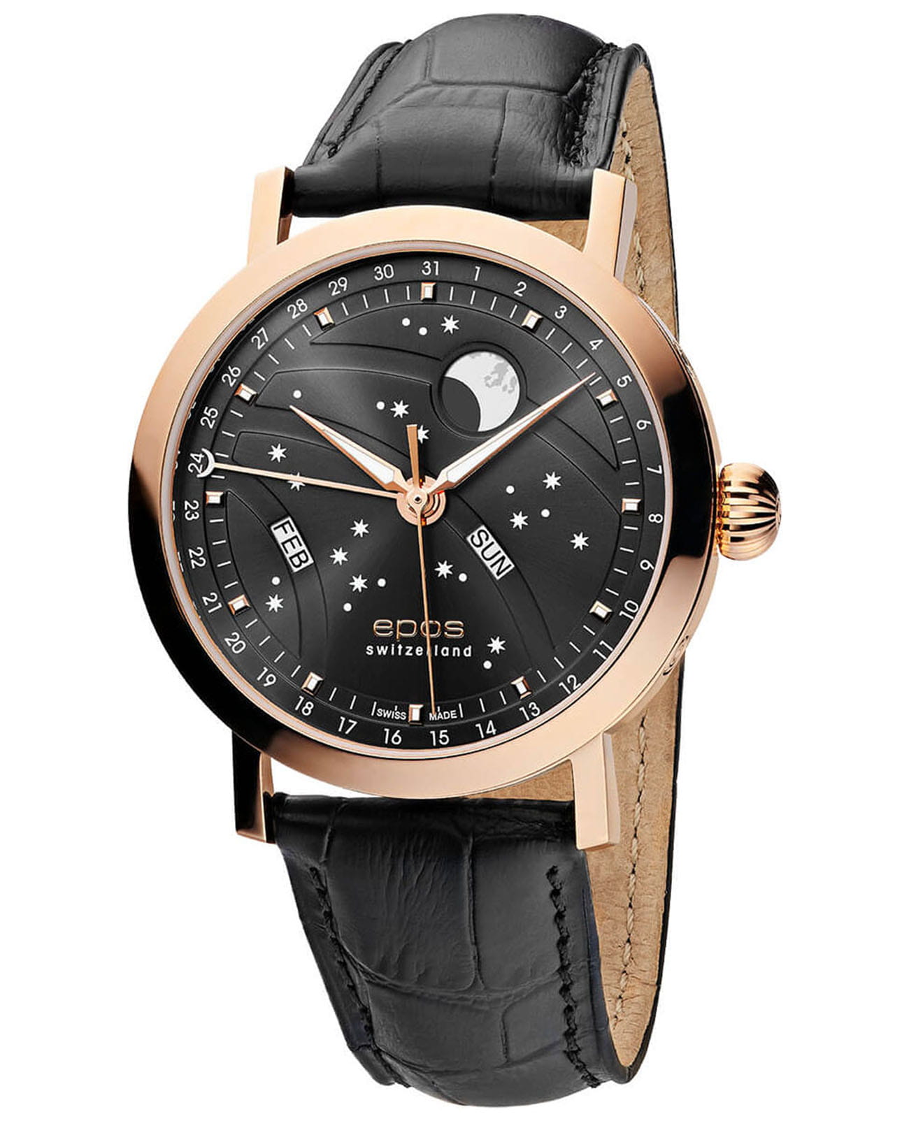 Швейцарские мужские механические часы Epos Big Moon 3440.322.24.14.25