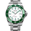 Мужские механические часы с автоподзаводом Epos из коллекции Diver - это профессиональный дайверский инструмент с швейцарским качеством. Корпус диаметром 42 мм и толщиной 14 мм выполнен из нержавеющей стали 316L. Циферблат белого цвета оформлен метками в виде точек и штрихов. Циферблат защищён сапфировым стекломСапфировое стеклоПрочный и надёжный материал из кристалла сапфира синтетического происхождения, характеризующийся особой твёрдостью и устойчивостью к царапинам и повреждениям.. Стрелки и метки с люминесцентным покрытиемЛюминесцентное покрытиеПозволяет считывать показания времени в темноте. Производители наносят на стрелки, часовые индексы, безель или поверхность циферблата светонакопительный состав, дающий холодное свечение., обеспечивающим отличную читаемость в темноте. Механизм — швейцарский калибр Sellita SW200 с запасом хода 38 часов. Окошко даты с увеличительным стеклом расположено в положении 3 часов. БезельБезельВнешний ободок, закрепляющий стекло. В спортивных часах так называется поворотное кольцо с делениями на циферблате, выполняет роль таймера – замеряет отрезки времени на шкале. Неподвижный безель – элемент декора. Однонаправленно вращающийся безель на дайверских часах позволяет фиксировать моменты погружения и выныривания на поверхность. — однонаправленный вращающийся, что обеспечивает безопасность при погружении. Завинчивающаяся коронка и автоматический гелиевый клапан позволяют использовать часы для глубоководных погружений. Часы оснащены стальным браслетом с раскладной застёжкойРаскладная застёжкаТакой тип застёжки используется только на браслетах из металла. Она никогда не раскрывается полностью, происходит разделение на 2 и более частей. Раскладывающая застёжка снизит вероятность потери часов к минимуму.. Водонепроницаемость 500 м соответствует требованиям для дайвинга. Гарантия — 24 месяца. Идеальный выбор для тех, кто ценит надёжность, точность и экстремальные испытания.