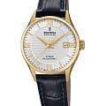 Сапфировое стеклоСапфировое стеклоПрочный и надёжный материал из кристалла сапфира синтетического происхождения, характеризующийся особой твёрдостью и устойчивостью к царапинам и повреждениям. устойчивое к появлению царапин, обладающее высокой прозрачностью. Циферблат декорирован узором. Класс водозащиты: 100 метров, позволит защитить корпус от случайных брызг или капель дождя. Корпус часов изготовлен из нержавеющей стали с PVDPVDУльтратонкое покрытие наносится в технике вакуумного напыления, сочетает в себе нитрид титана особой прочности со слоем золота или оксида хрома. Несёт в себе декоративную или защитную функцию. покрытием. Натуральной кожаный ремешок с классической застежкой, ширина ремешка 14мм. Рифленая заводная головка.