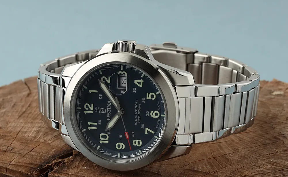 Мужские кварцевые часы Festina F20081/2 из коллекции Swiss Made — это стильный аксессуар с швейцарским качеством и лаконичным дизайном. Корпус диаметром 42 мм и толщиной 11 мм выполнен из нержавеющей стали серебряного цвета. Циферблат синего цвета оформлен индексами и дополнен окошком даты в положении 3 часов. Циферблат защищён сапфировым стекломСапфировое стеклоПрочный и надёжный материал из кристалла сапфира синтетического происхождения, характеризующийся особой твёрдостью и устойчивостью к царапинам и повреждениям. с антибликовым покрытиемАнтибликовое покрытиеСлой оксида металла в 0,13-0,3 микрон, благодаря которому стекло часов не бликует и не отражает свет. Антибликовое покрытие уменьшает отражение света в 10 раз, обеспечивая отличную читаемость показателей циферблата.. Стрелки и метки с люминесцентным покрытиемЛюминесцентное покрытиеПозволяет считывать показания времени в темноте. Производители наносят на стрелки, часовые индексы, безель или поверхность циферблата светонакопительный состав, дающий холодное свечение., обеспечивающим хорошую читаемость в темноте. Завинчивающаяся коронка и задняя крышка повышают надёжность конструкции. Часы оснащены стальным браслетом на раскладной застёжкеРаскладная застёжкаТакой тип застёжки используется только на браслетах из металла. Она никогда не раскрывается полностью, происходит разделение на 2 и более частей. Раскладывающая застёжка снизит вероятность потери часов к минимуму. с кнопками. Механизм — кварцевый калибр Ronda 715 с 60-месячным сроком службы батареи. Водонепроницаемость 100 м позволяет использовать часы для плавания. Универсальный выбор для тех, кто ценит точность, надёжность и классический стиль.