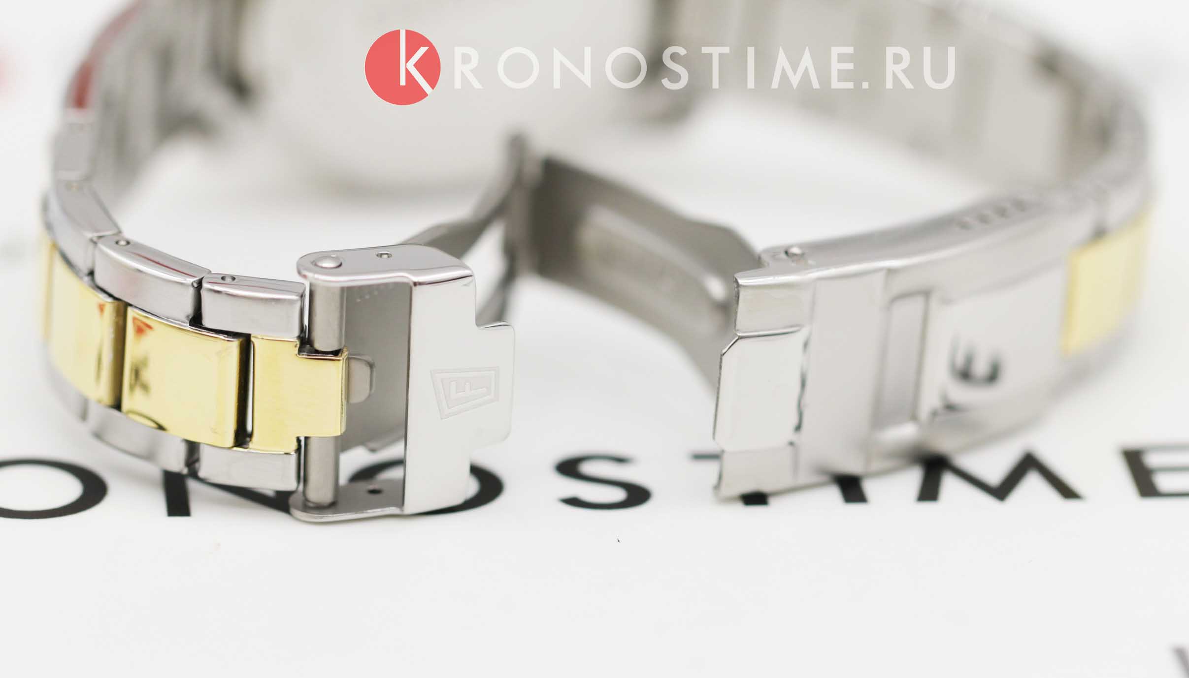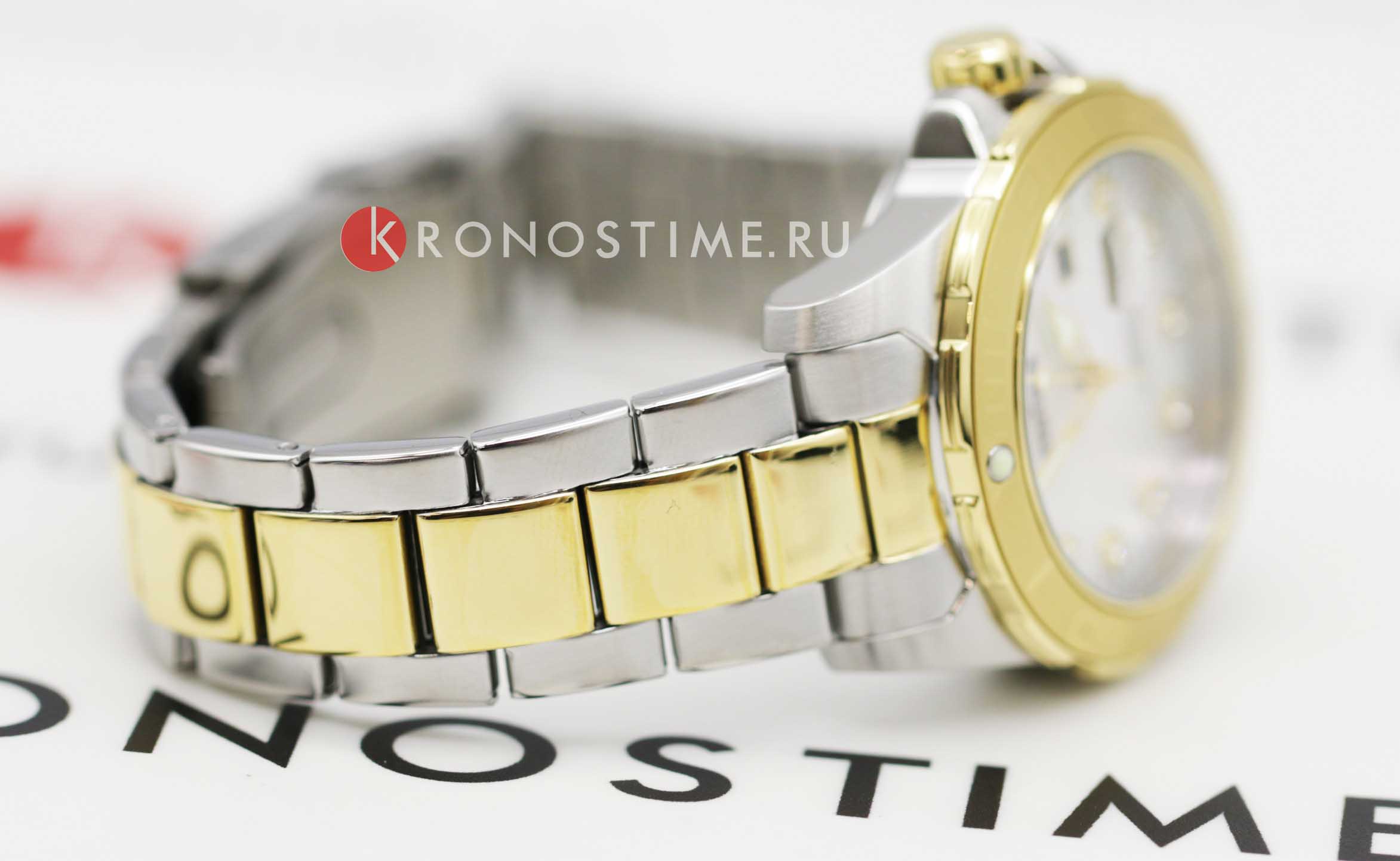 Кварцевый механизм с высокой точностью. Минеральное стеклоМинеральное стеклоМинеральное стекло представляет собой искусственно выращенный минерал кварца. Такое стекло отличается особой устойчивостью к повреждениям и царапинам. Уступает по некоторым качествам сапфировому стеклу. устойчивое к появлению царапин, обладающее высокой прозрачностью. Стрелки с люминесцентным покрытиемЛюминесцентное покрытиеПозволяет считывать показания времени в темноте. Производители наносят на стрелки, часовые индексы, безель или поверхность циферблата светонакопительный состав, дающий холодное свечение.. Класс водозащиты: 100 метров, позволит плавать, нырять и заниматься другими водными видами спорта. Поворотный безельБезельВнешний ободок, закрепляющий стекло. В спортивных часах так называется поворотное кольцо с делениями на циферблате, выполняет роль таймера – замеряет отрезки времени на шкале. Неподвижный безель – элемент декора. Однонаправленно вращающийся безель на дайверских часах позволяет фиксировать моменты погружения и выныривания на поверхность.. Корпус часов изготовлен из нержавеющей стали. Браслет с частичным PVD-покрытиемPVDУльтратонкое покрытие наносится в технике вакуумного напыления, сочетает в себе нитрид титана особой прочности со слоем золота или оксида хрома. Несёт в себе декоративную или защитную функцию. и с раскладной застёжкойРаскладная застёжкаТакой тип застёжки используется только на браслетах из металла. Она никогда не раскрывается полностью, происходит разделение на 2 и более частей. Раскладывающая застёжка снизит вероятность потери часов к минимуму..