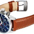 Эксклюзивный хронографХронографФункция позволяет измерять отрезки времени с особой точностью: часы, минуты, секунды. Верным признаком хронографа является наличие на циферблате 3 дополнительных окошек-счётчиков. с секундомеромСекундомерСекундоме́р — прибор, способный измерять интервалы времени с точностью до долей секунды., отличающийся продуманным дизайном и отделкой, придется по вкусу мужчинам, ценящим идеальное соотношение цены и качества.. Минеральное стеклоМинеральное стеклоМинеральное стекло представляет собой искусственно выращенный минерал кварца. Такое стекло отличается особой устойчивостью к повреждениям и царапинам. Уступает по некоторым качествам сапфировому стеклу. устойчивое к появлению царапин, обладающее высокой прозрачностью. Циферблат с люминесцентным покрытиемЛюминесцентное покрытиеПозволяет считывать показания времени в темноте. Производители наносят на стрелки, часовые индексы, безель или поверхность циферблата светонакопительный состав, дающий холодное свечение. стрелок. Класс водозащиты: 50 метров, позволит защитить корпус от случайных брызг или капель дождя.