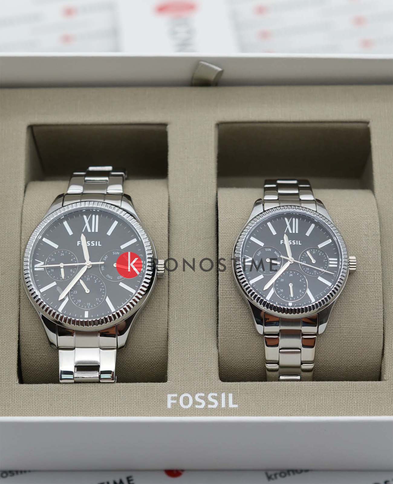 Американские часы Fossil Rye His and Her Multifunction Stainless Steel Watch Set BQ2644SET