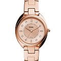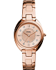 Fossil Gabby ES5070 - кварцевые часы с базовой трёхстрелочной индикацией и датой в положении 6 часов. Корпус 34 мм выполнен из стали с IP-покрытиемIP-покрытиеМетод ионного напыления. Демонстрирует повышенную устойчивость к истиранию, окислению и химическим веществам. Под воздействием высокого давления и температуры около 1500°C молекулы металла надёжно соединяются с частицами корпуса часов. под розовое золото. Водозащита 50WR подходит для повседневного контакта с водой. Розовый циферблат с комбинированной разметкой: римские цифры и точечные метки с кристаллами. Установлено минеральное стеклоМинеральное стеклоМинеральное стекло представляет собой искусственно выращенный минерал кварца. Такое стекло отличается особой устойчивостью к повреждениям и царапинам. Уступает по некоторым качествам сапфировому стеклу., устойчивое к мелким повреждениям. Стальной браслет с покрытием и системой быстрой замены, фиксируется на раскладной застёжкеРаскладная застёжкаТакой тип застёжки используется только на браслетах из металла. Она никогда не раскрывается полностью, происходит разделение на 2 и более частей. Раскладывающая застёжка снизит вероятность потери часов к минимуму..