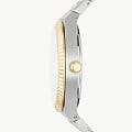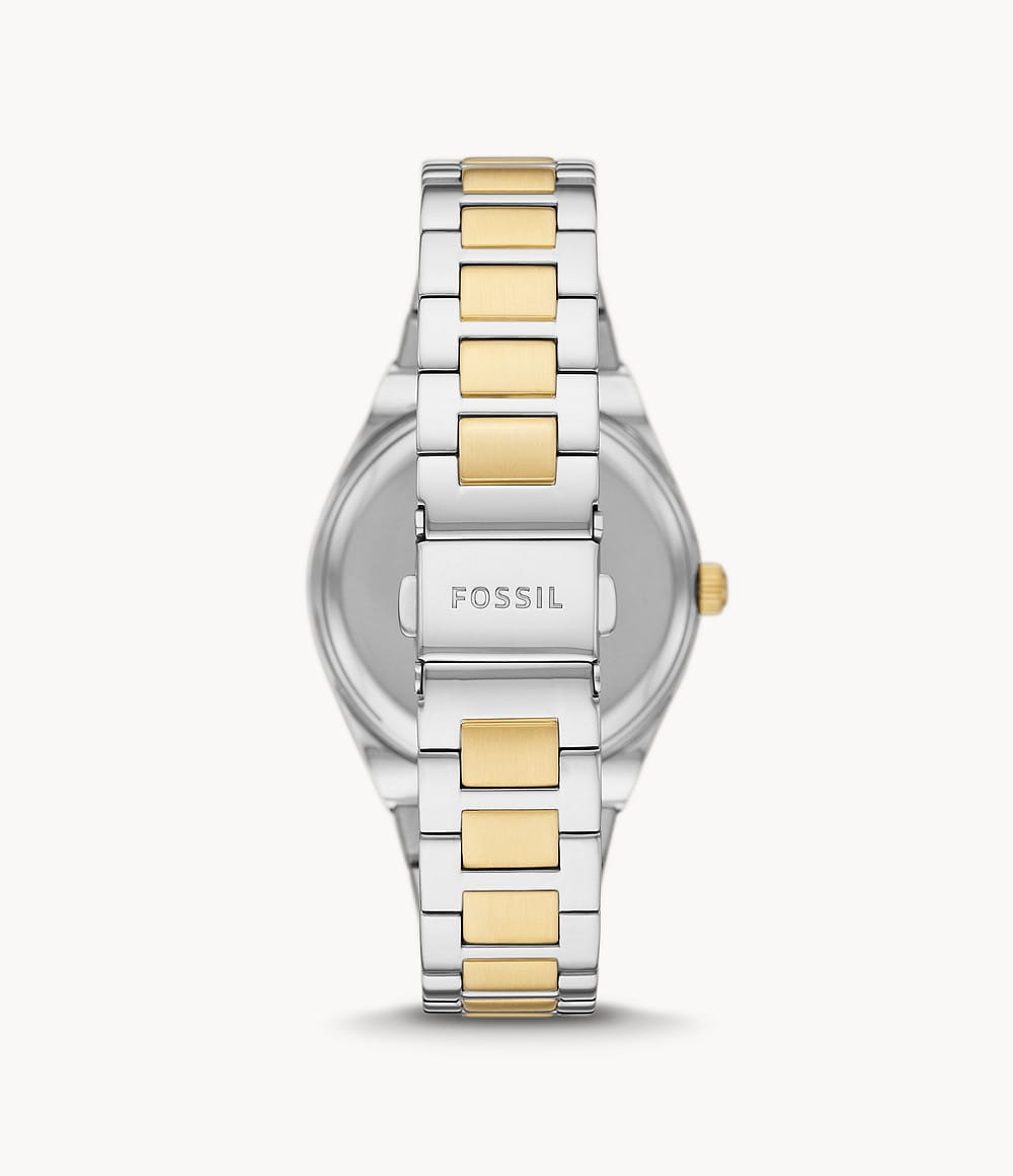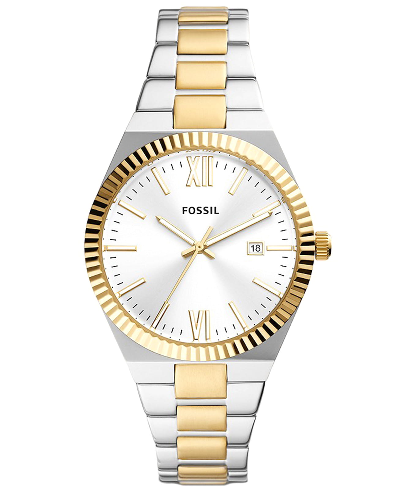 Женские американские кварцевые часы Fossil Scarlette ES5259, кварцевый механизм с высокой точностью. Класс водозащиты: 50 метров, позволит защитить корпус от случайных брызг или капель дождя. Корпус часов изготовлен из стали. БезельБезельВнешний ободок, закрепляющий стекло. В спортивных часах так называется поворотное кольцо с делениями на циферблате, выполняет роль таймера – замеряет отрезки времени на шкале. Неподвижный безель – элемент декора. Однонаправленно вращающийся безель на дайверских часах позволяет фиксировать моменты погружения и выныривания на поверхность. с IP-покрытиемIP-покрытиеМетод ионного напыления. Демонстрирует повышенную устойчивость к истиранию, окислению и химическим веществам. Под воздействием высокого давления и температуры около 1500°C молекулы металла надёжно соединяются с частицами корпуса часов.. Стальной браслет с раскладной застёжкойРаскладная застёжкаТакой тип застёжки используется только на браслетах из металла. Она никогда не раскрывается полностью, происходит разделение на 2 и более частей. Раскладывающая застёжка снизит вероятность потери часов к минимуму. с частичным IP-покрытиемIP-покрытиеМетод ионного напыления. Демонстрирует повышенную устойчивость к истиранию, окислению и химическим веществам. Под воздействием высокого давления и температуры около 1500°C молекулы металла надёжно соединяются с частицами корпуса часов.. Окошки дня недели и даты находятся в положении 3 часа. Стрелки и метки с люминесцентным покрытиемЛюминесцентное покрытиеПозволяет считывать показания времени в темноте. Производители наносят на стрелки, часовые индексы, безель или поверхность циферблата светонакопительный состав, дающий холодное свечение..