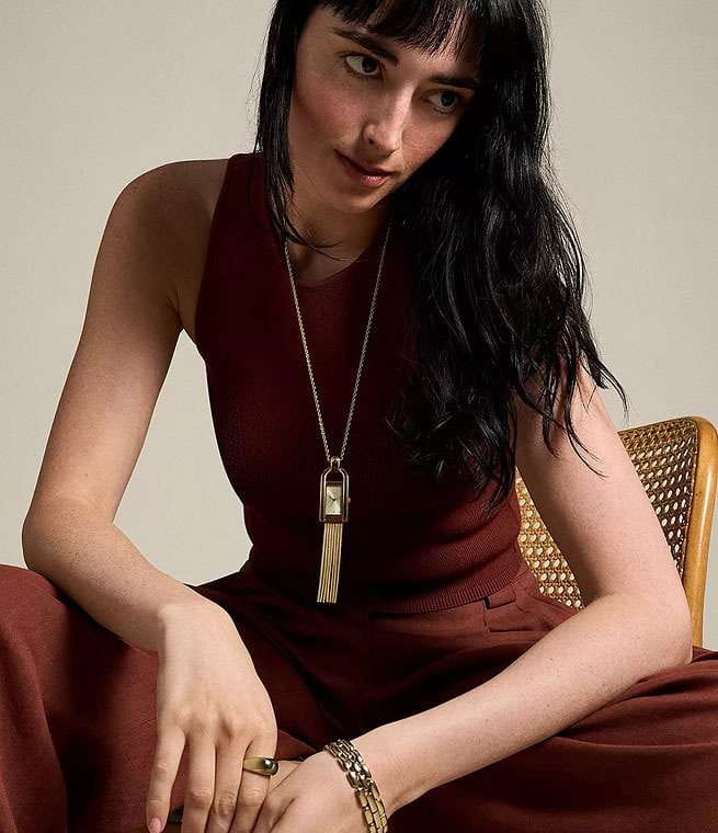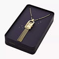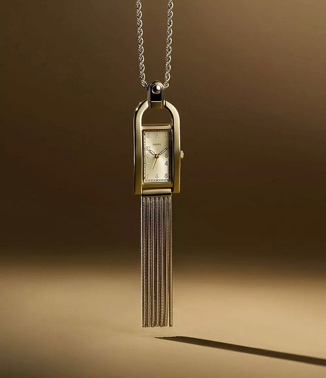 Женские часы-ожерелье Fossil Harwell ES5373 — это изящный и практичный аксессуар, который станет идеальным дополнением для вечерних образов. Эта модель сочетает в себе уникальный дизайн и высокое качество, что делает её привлекательным выбором для различных ситуаций. Fossil Harwell ES5373 оснащены кварцевым механизмом, который гарантирует точность и надёжность хода. Корпус и цепь выполнены из нержавеющей стали с золотистым IP-покрытиемIP-покрытиеМетод ионного напыления. Демонстрирует повышенную устойчивость к истиранию, окислению и химическим веществам. Под воздействием высокого давления и температуры около 1500°C молекулы металла надёжно соединяются с частицами корпуса часов., что обеспечивает долговечность и придаёт часам современный вид. Минеральное стеклоМинеральное стеклоМинеральное стекло представляет собой искусственно выращенный минерал кварца. Такое стекло отличается особой устойчивостью к повреждениям и царапинам. Уступает по некоторым качествам сапфировому стеклу. защищает циферблат от царапин и механических повреждений, увеличивая срок службы аксессуара. Рифленая заводная головка и цепочка добавляют удобства и изысканности в использовании. Водозащита до 5 бар (50 метров) позволяет часам выдерживать брызги воды и капли дождя, сохраняя при этом свою работоспособность. Стрелки с люминесцентным покрытиемЛюминесцентное покрытиеПозволяет считывать показания времени в темноте. Производители наносят на стрелки, часовые индексы, безель или поверхность циферблата светонакопительный состав, дающий холодное свечение. позволяют легко считывать время даже в условиях низкой освещенности.
