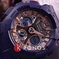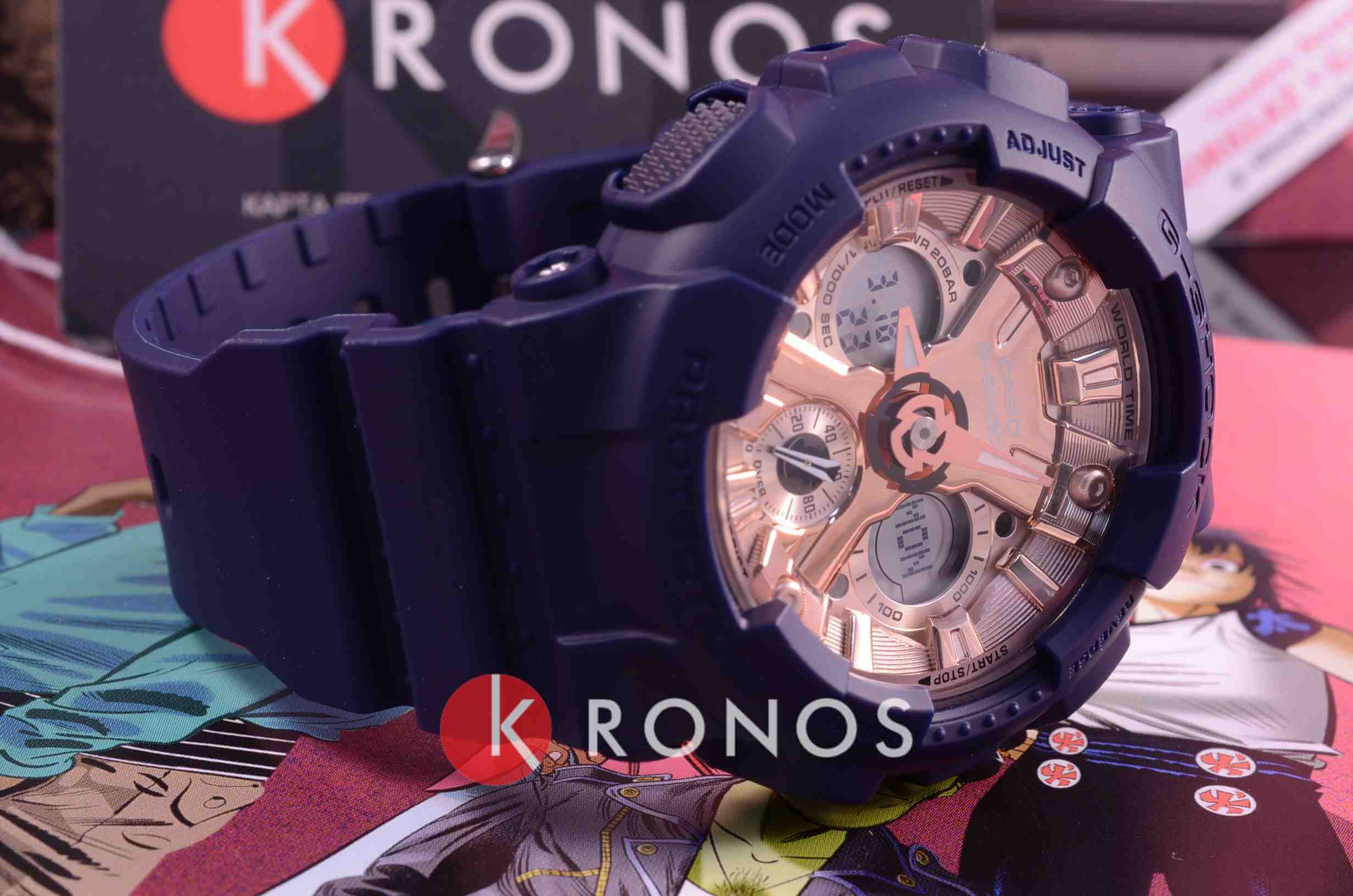 Тёмно-синий корпус с матовой поверхностью отлично гармонирует с металлизированным циферблатом, представленным в цвете розового золота. Аксессуар станет подходящим вариантом для ежедневного ношения. Отдельно стоит выделить наличие противоударного корпусаУдаропрочный корпусМеханизм заключён в корпус, выполненный из современных материалов, устойчивых к ударам, механическим повреждениям и падению с высоты: инновационный пластик, карбон, нержавеющая сталь, титан. из полимерного пластика, который обеспечивает японский кварцевый механизм максимальной защитой. Батарейка обеспечивает механизм энергией на протяжении 3 лет. Циферблат подсвечивается ярким светодиодомСветодиодная подсветкаСветодиодная или LED-подсветка обеспечивает появление яркого холодного свечения за счёт LED-элементов - маленьких лампочек. Они потребляют минимальное количество энергии, чаще всего можно встретить 1 светодиод, в нижней части циферблата.. Минеральное стекло препятствует образованию царапин. Сохранение водостойкости конструкции при давлении до 20 бар. Устойчивость к негативному воздействию магнитных полей. Автоматический календарь до 2099 года, 5 ежедневных будильников, хронографХронографФункция позволяет измерять отрезки времени с особой точностью: часы, минуты, секунды. Верным признаком хронографа является наличие на циферблате 3 дополнительных окошек-счётчиков., секундомер с точностью в 1/100 секунды, мировое времяМировое время Полезное часовое усложнение, отображающее время в основных городах и известных областях по всему миру, оно связано с часовыми поясами, удобно для путешественников и бизнесменов. , таймер, UTCUTCВсемирное кординационное время, не имеющее привязки к географическому положению Гринвича, основывается на атомном отсчёте времени. Регулировка времени осуществляется более точно, чем устаревшее GMT.
