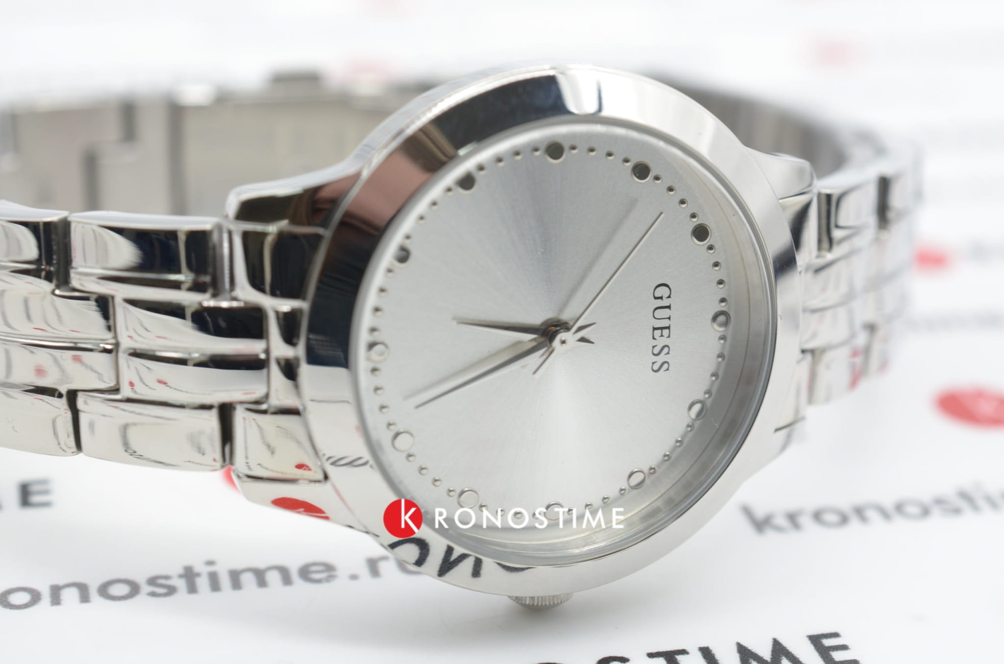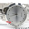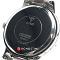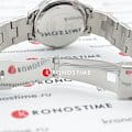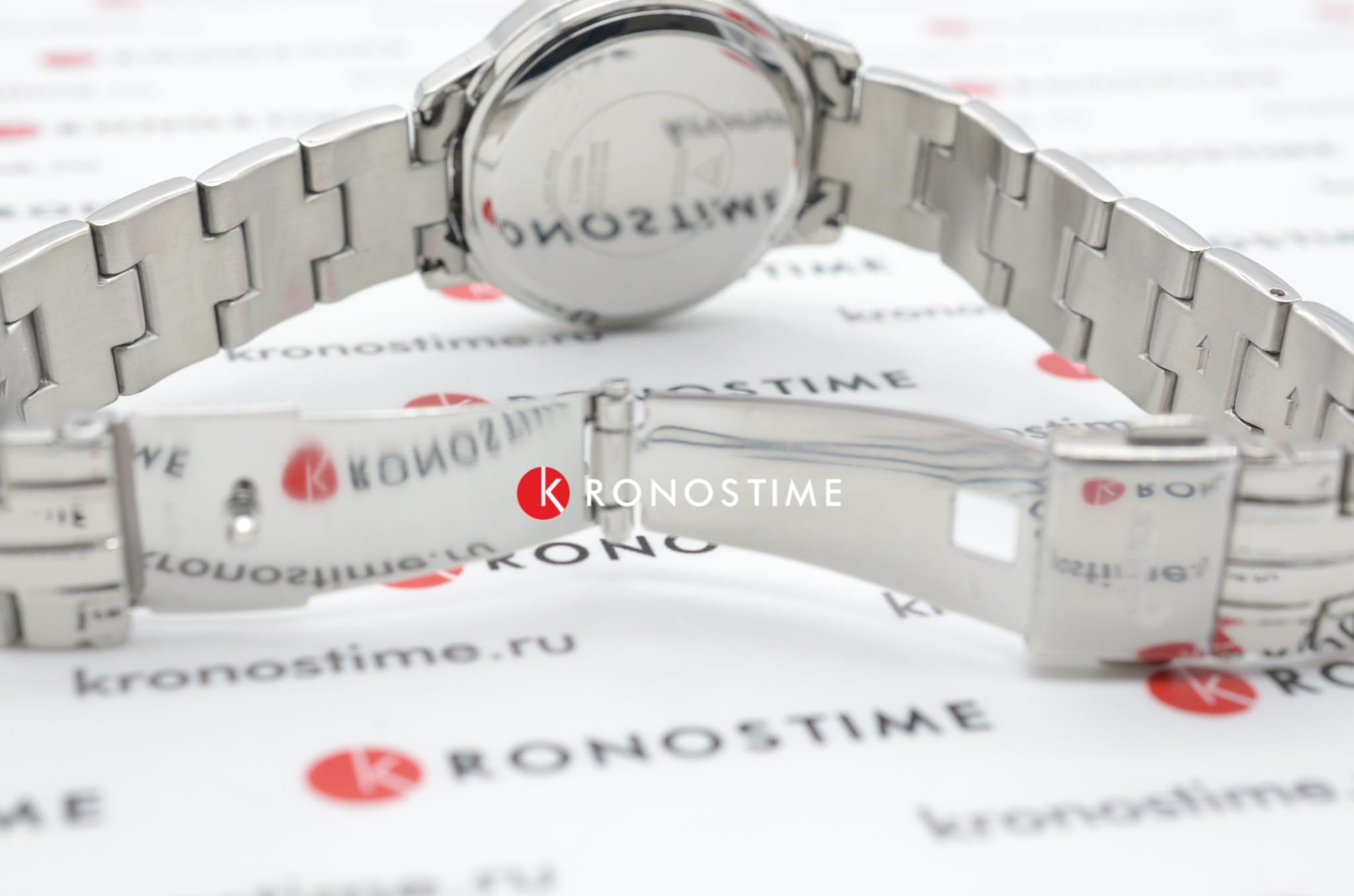 Серебристый компактный циферблат не имеет ни одной лишней детали, присутствуют лишь стрелки и оригинальная часовая разметка. Необычным оформлением отличается и браслет, для изготовления которого была использована нержавеющая сталь 316L. Кварцевый механизм работает от батарейки, имеющей продолжительный срок службы. Минеральное стекло устойчиво к образованию царапин. Водозащита до 3 бар. Диаметр корпуса: 30 мм.